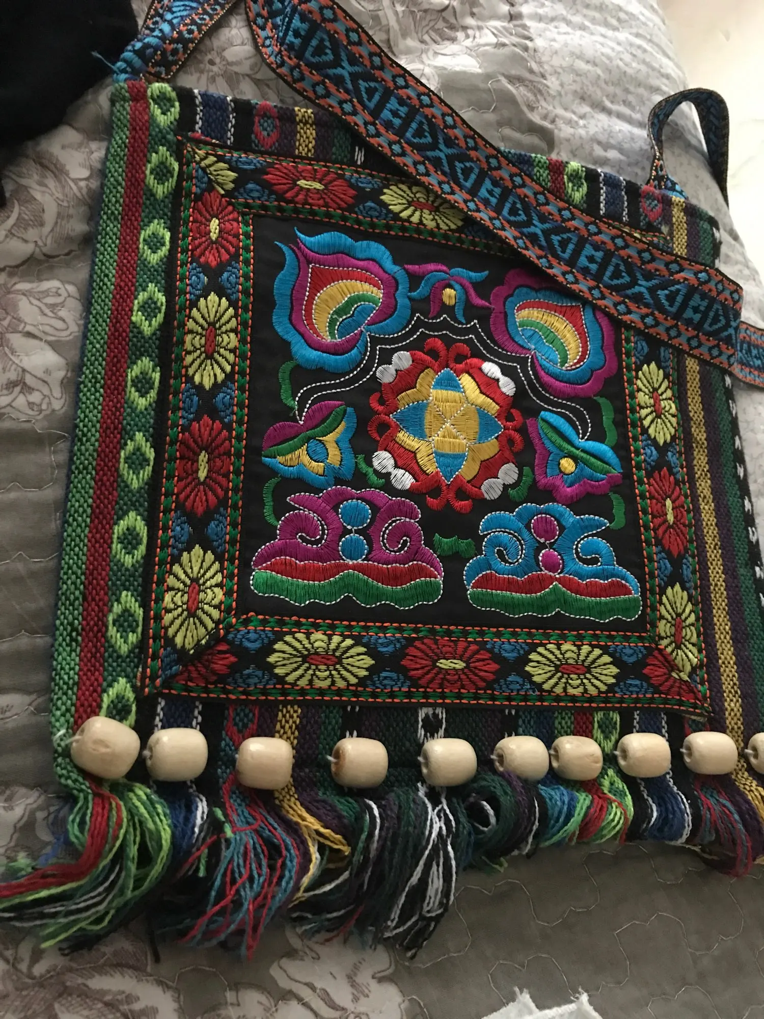 Винтажная сумка Hmong в китайском национальном стиле, Этническая сумка через плечо с вышивкой в стиле бохо, хиппи-кисточка сумки-мессенджеры
