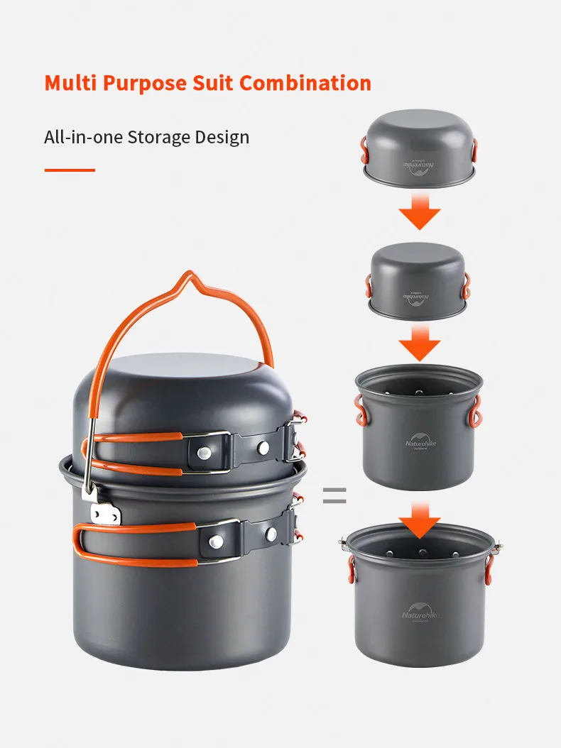 Набор кастрюль для пикника 4 в 1, на 2-3 человека, NH15T401-G