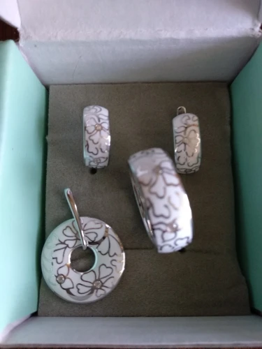 прекрасный комплект на каждый день. серьги сидят идеально. кольцо широкое и массивное. подвеска без цепочки. рекомендую, летом под загар подойдёт идеально.