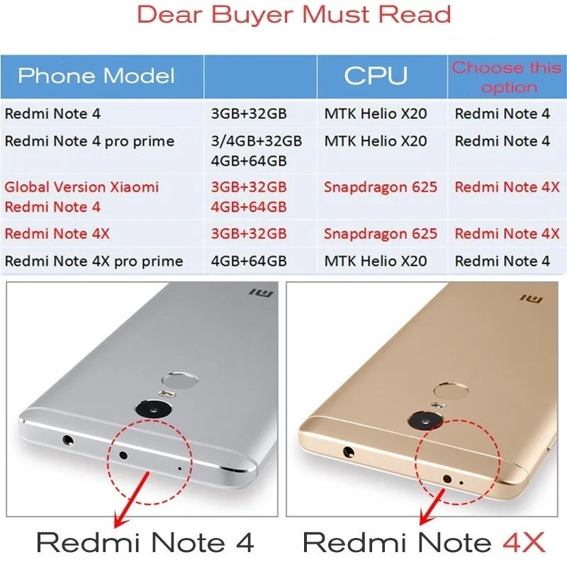 Redmi note 4 и redmi note 4 глобальная версия отличается .Пожалуйста, подтвердите модель вашего телефона перед покупкой!