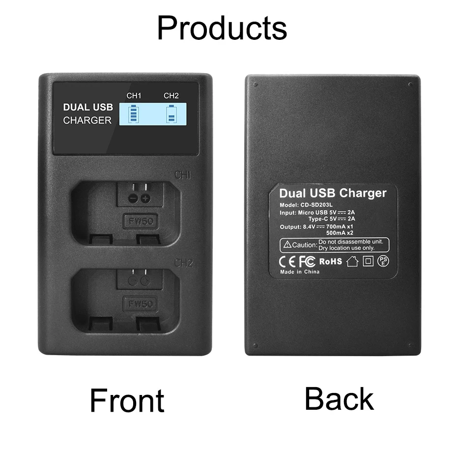 2 шт. 2000 мАч, NP-FW50 NP FW50 Камера Батарея + USB ЖК-дисплей дво...