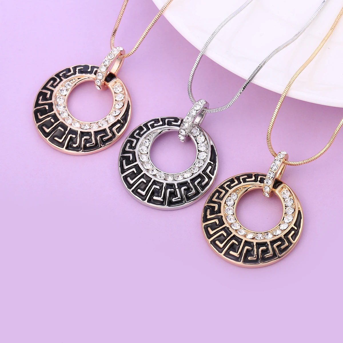 Новинка, винтажное ожерелье с подвеской в виде Круга, европейская личность, цепочка в виде змеи, кристалл, Женское Ожерелье и подвеска, эффектное ювелирное изделие