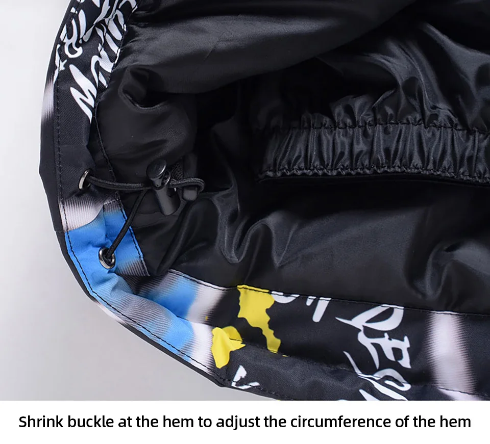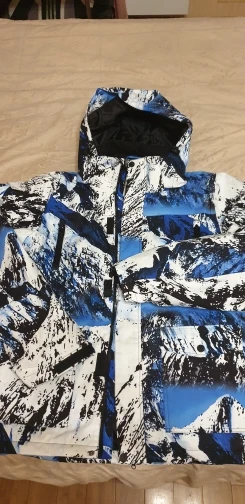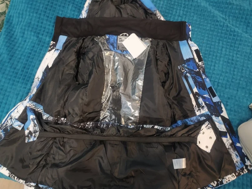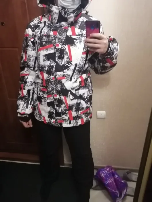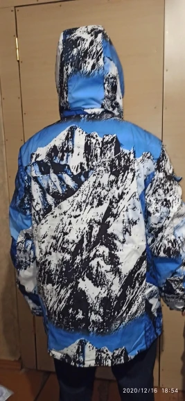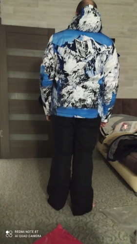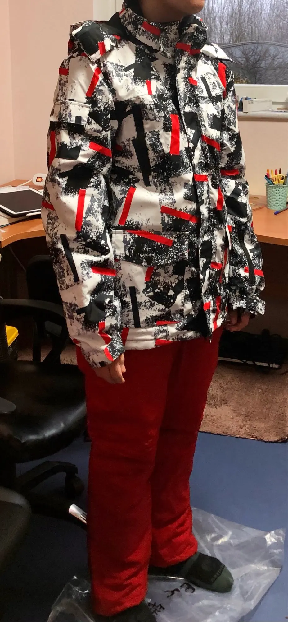 Итак куртка размера L на парня 170см и 65кг сидит нормально может чуть чуть великоват с футболкой и свитером для тех кто привык немного свободные носить Качество я бы сказал на 4 с минусом, куртка тонкая, вес около 950 грамм, продуманность деталей не на самом высоком уровне, ЭТО НЕ МЕМБРАННАЯ ТКАНЬ, изнутри полностью не продуваемая типо резиновой основы на ткани, то есть велика вероятность того что вы будете в ней потеть как в полиэтиленовом пакете или парнике, манжеты на рукавах коротковаты даже на размере L поэтому толстый палец в них не сунешь так как тянут рукав сильно, обнаружил косяк с липучкой на рукаве пришили её вниз головой, принт конечно выглядит симпотично но те кто носил дорогие качественные куртки будет не очень доволен, своих денег стоит конечно но не более того Штаны типовые китайские от другого производителя, на вид нормальные не дорогие штаны, скорее всего это тоже не МЕМБРАННАЯ ткань, в подарок положил дешёвые тёплые но толстоватые перчатки,