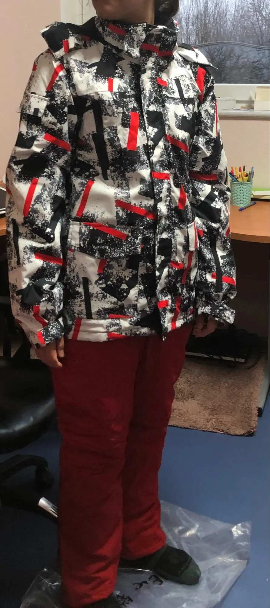 Костюм отличный. Куртка со всеми необходимыми карманами и клепками, рукава на манжете с отверстием для пальца-очень удобные, штаны утеплённые, подтяжки отстегиваются, внизу защитная резинка от снега. Продавец постоянно был на связи и очень оперативно отвечал на все интересующие вопросы. Доставка сравнительно быстрая.