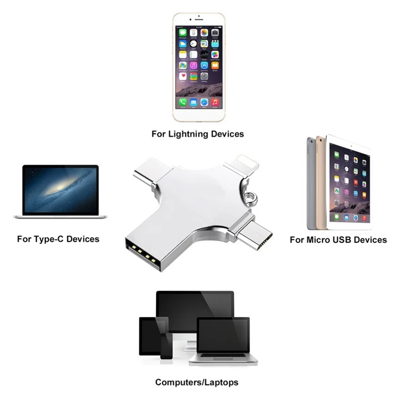 Function4 in 1 usb flash drive ( iPhone, Micro_USb, TypeC and computer