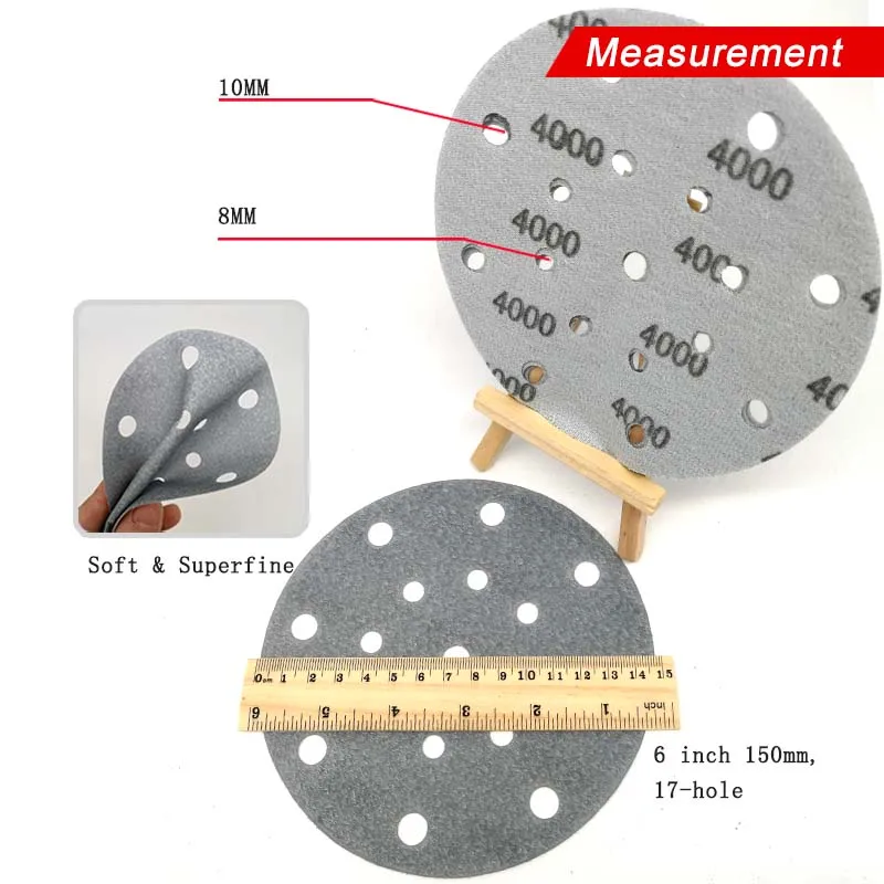 10 шт FV сверхтонкая пленка шлифовальный диск 6 дюймов 17-Hole Водонепроницаемая наждачная бумага 600-5000 Grits для влажнойсухой автомобильной краски шлифовки