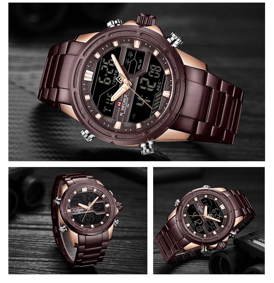 NAVIFORCE Роскошные Мужские Аналоговые Кварцевые спортивные часы Модные Военные уличные водонепроницаемые Chrono EL цифровые наручные часы с подсветкой 9138
