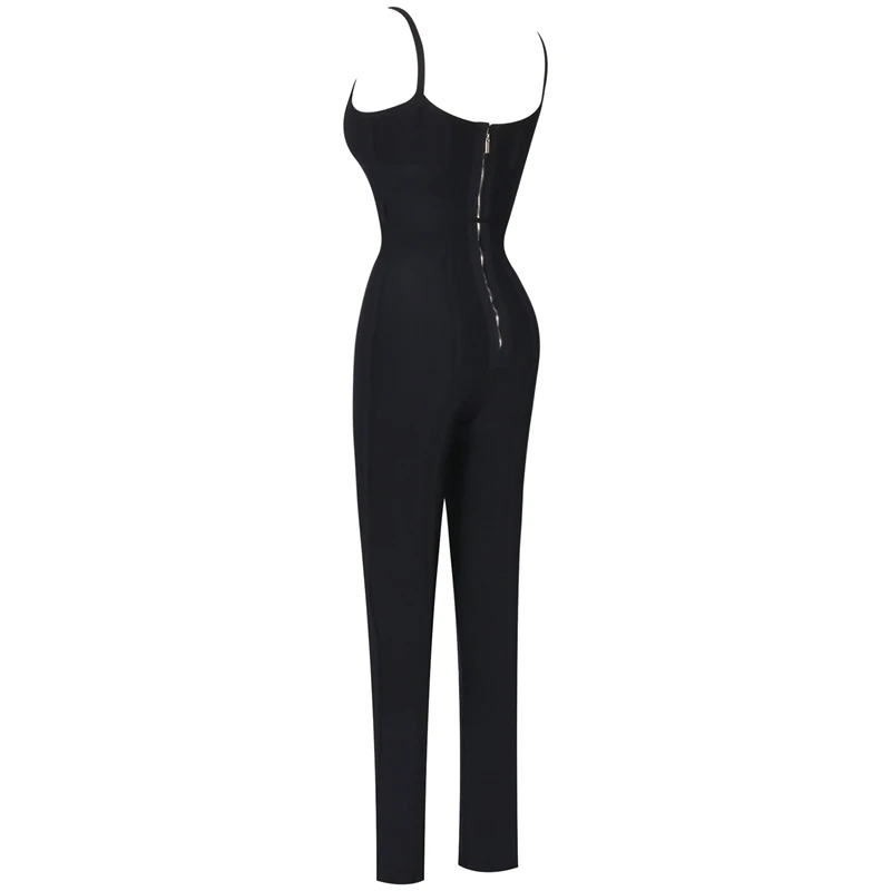 Женский комбинезон из спандекса, с принтом оленя, черный, клубный комбинезон с V-образным вырезом, длинные брюки, 2019