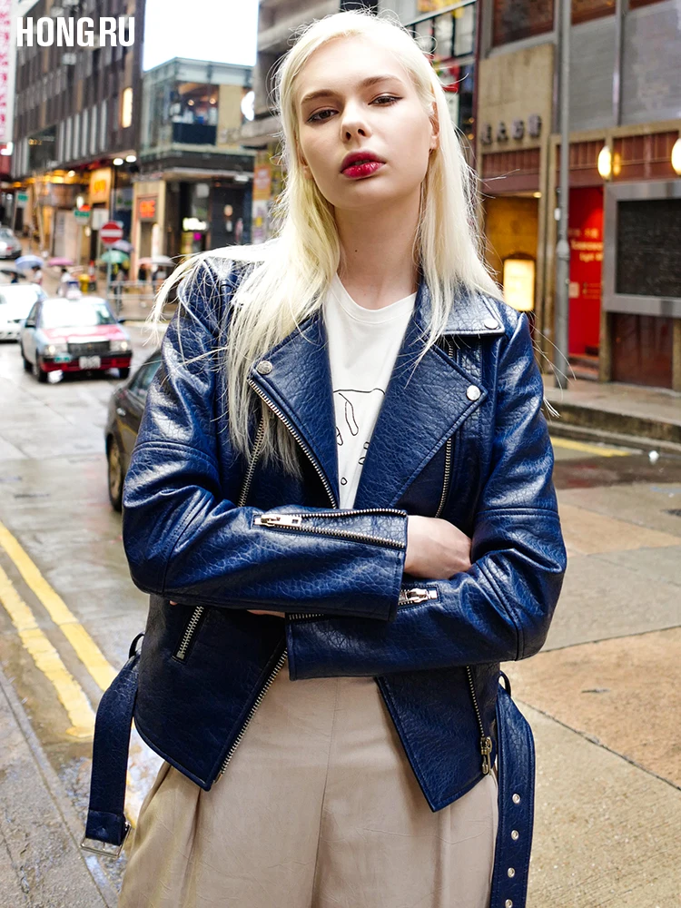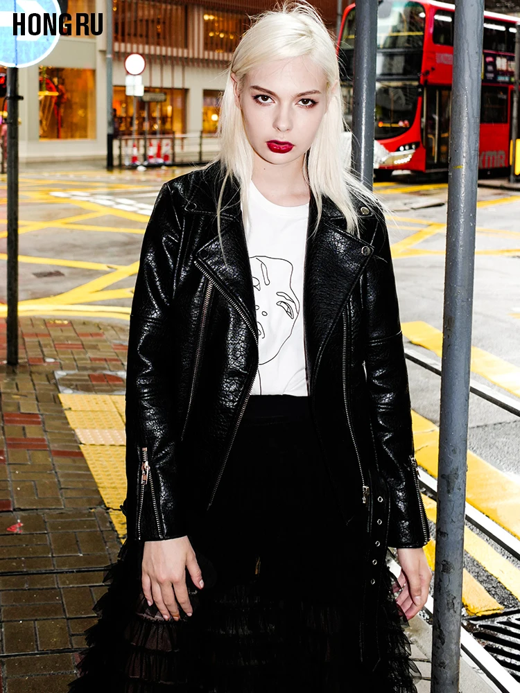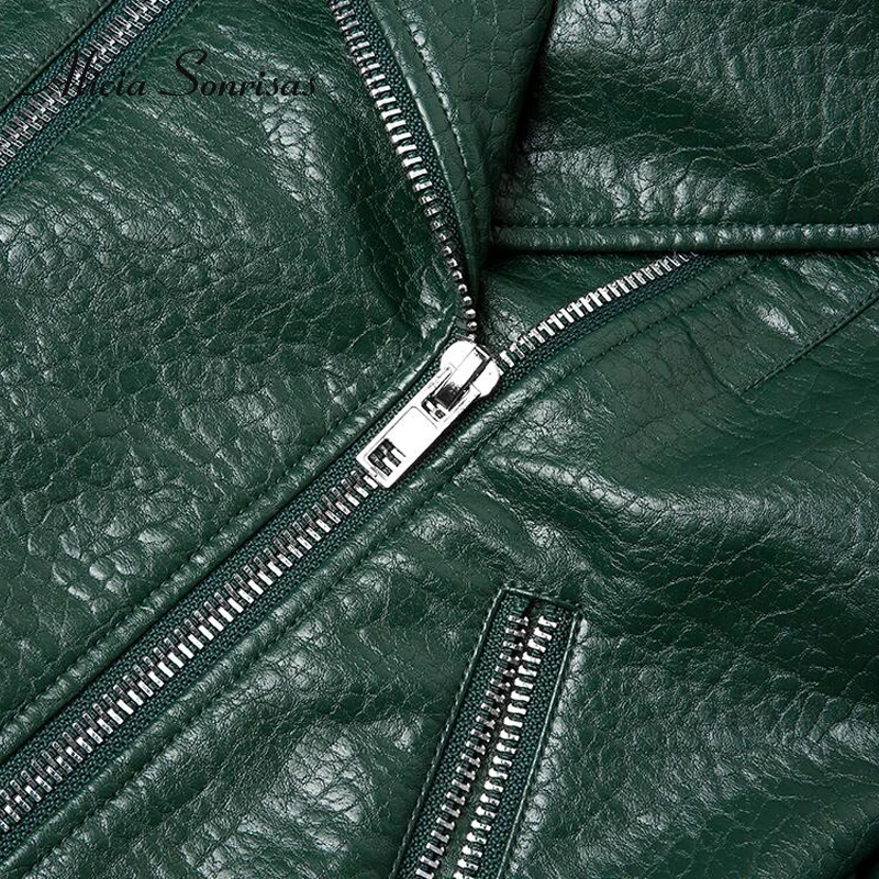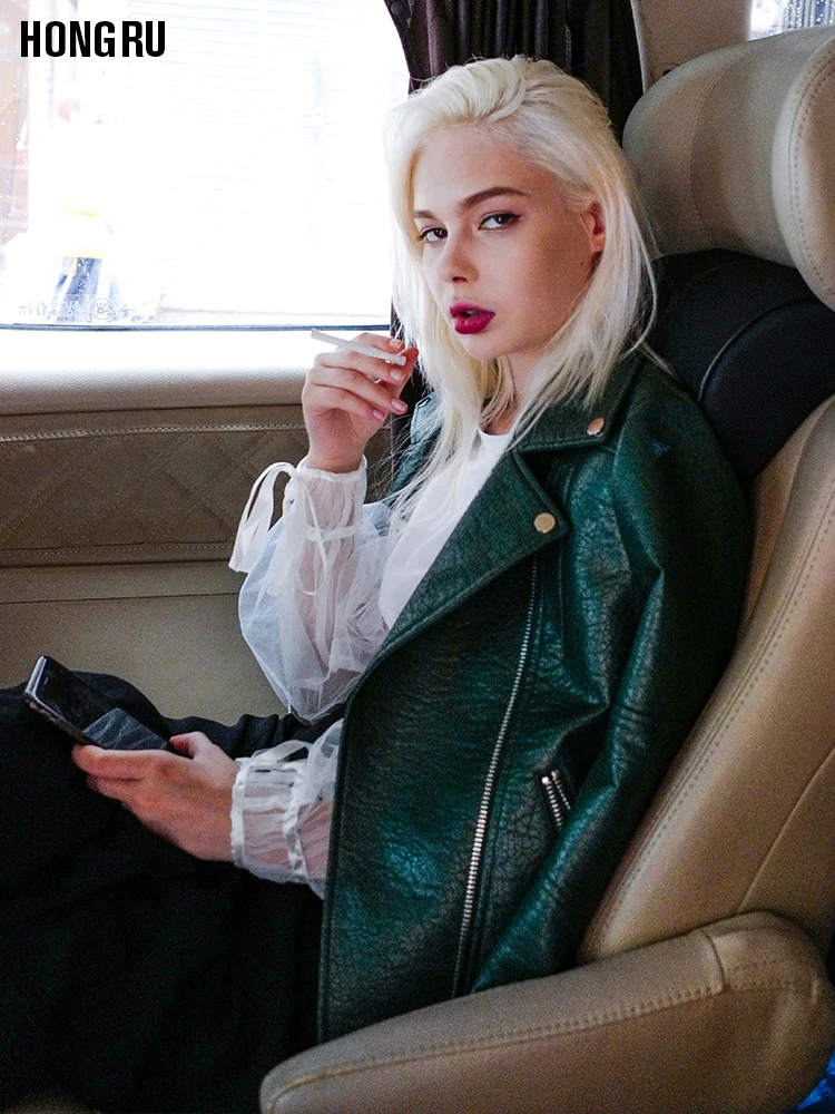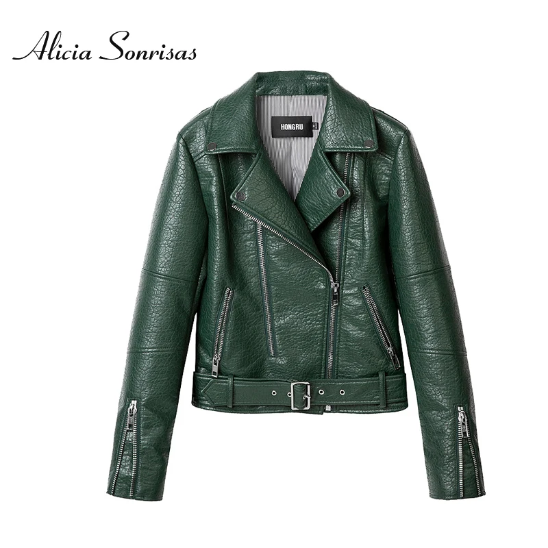 Куртка женская короткая из искусственной кожи, 3 цвета, демисезонная, зеленая, Байкерская, с длинным рукавом, HR1018, 2021