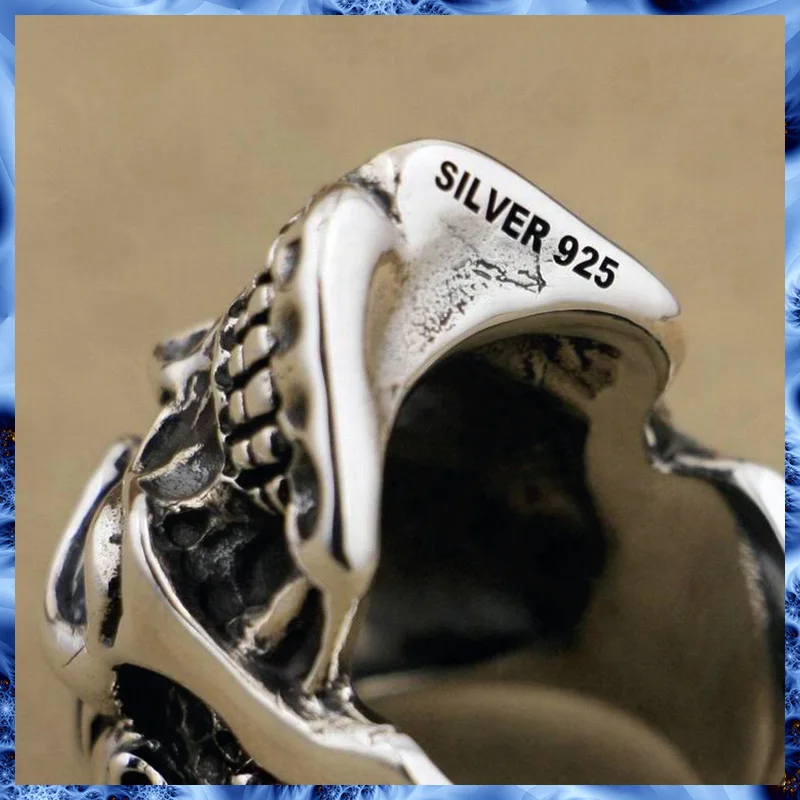 Огромное и тяжелое модное кольцо в стиле ретро из стерлингового сер...