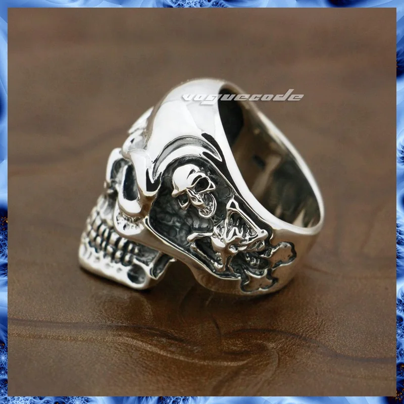 Кольцо в стиле панк, ретро, модное, с черепом, с скелетом, из стерлингового серебра 925 пробы, крутое, мужское, рыцарское, индивидуальность, титановое кольцо 8V005