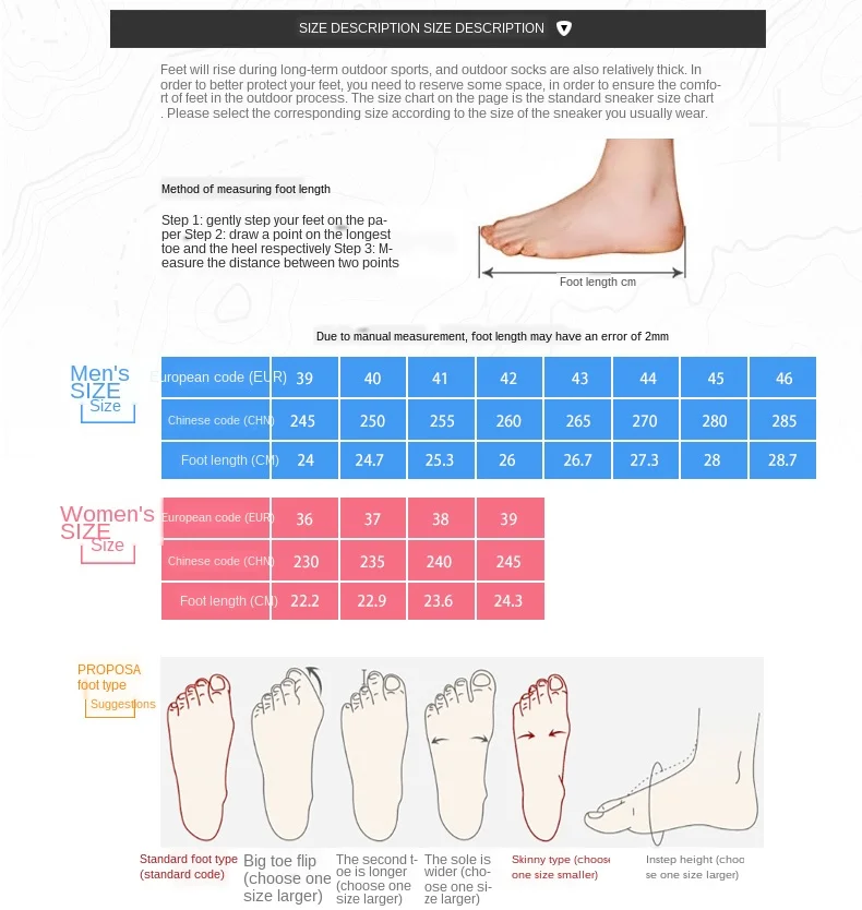 Пожалуйста, выберите размер в соответствии с длиной Вашей стопы (от пятки до носка), если вашСтопа шире или с толстым подъемом, пожалуйста, выбирайте на один размер больше, спасибо