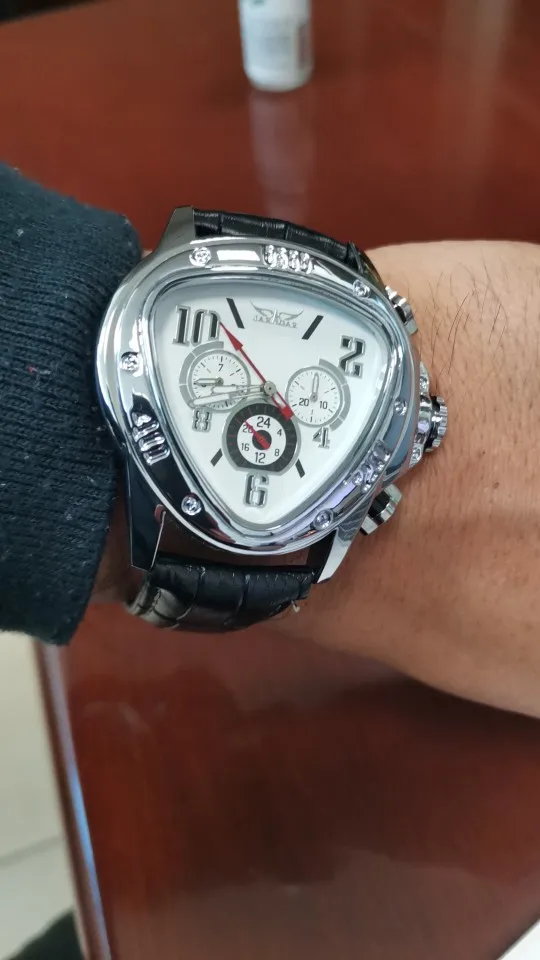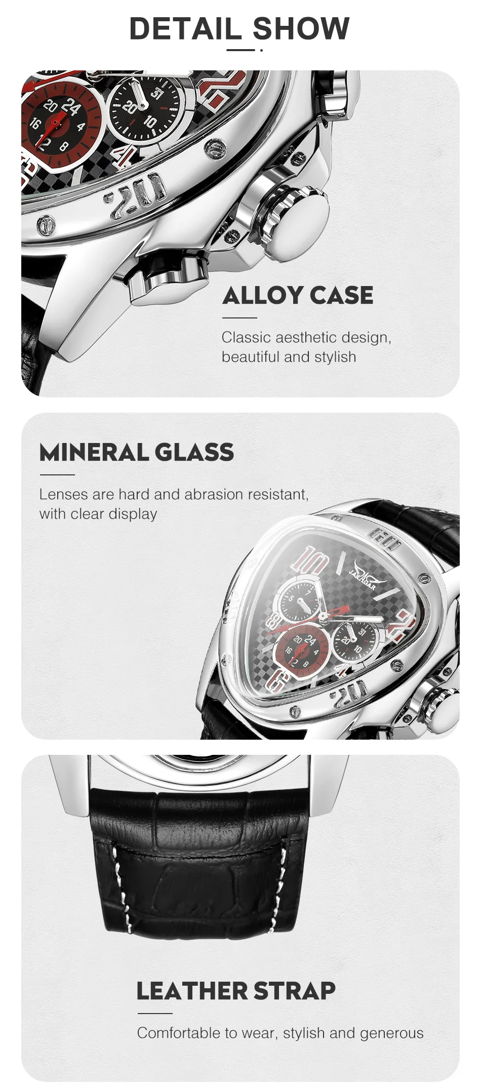 Часы мужские с треугольным ремешком из натуральной кожи, автоматические