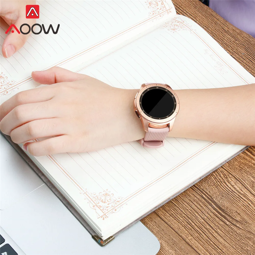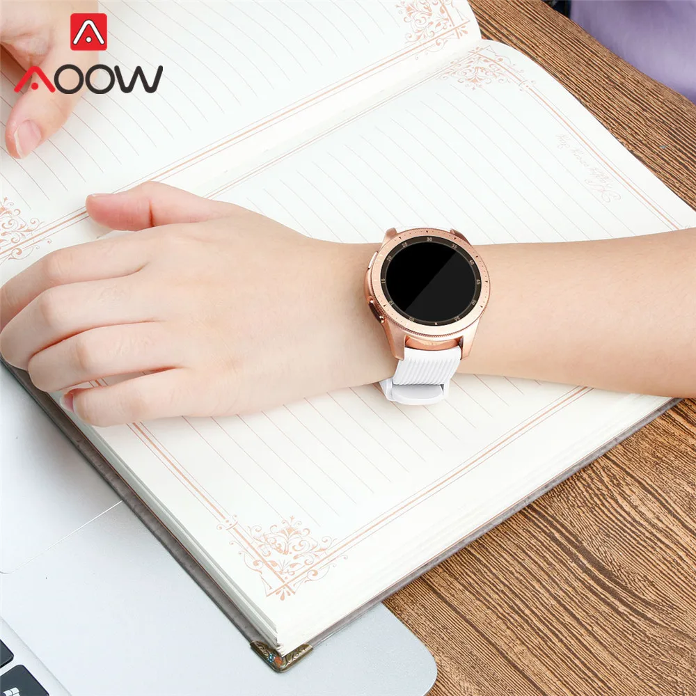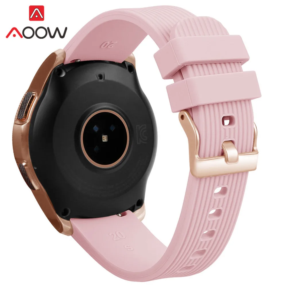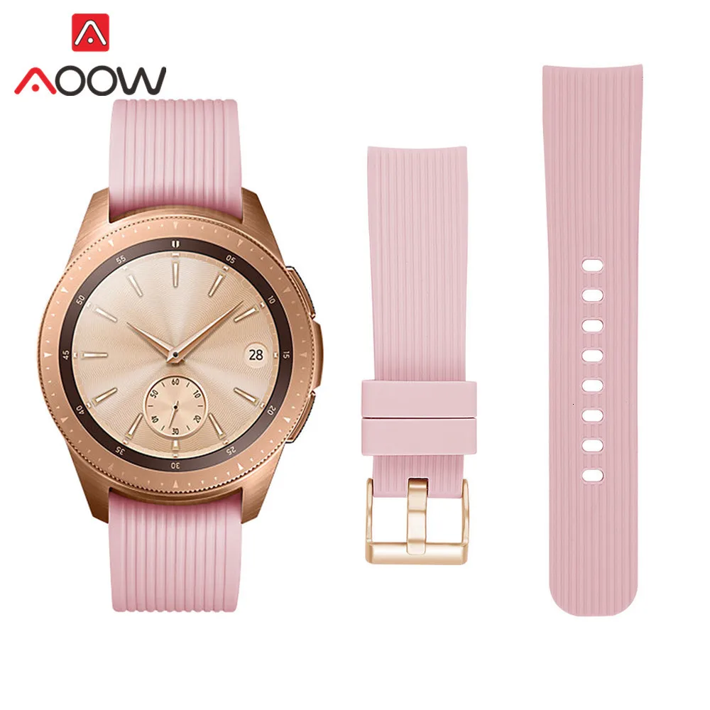 Силиконовый ремешок для часов Samsung Galaxy Watch Active, шириной 20 мм, полосатый, с застежкой под розовое золото, 42 мм