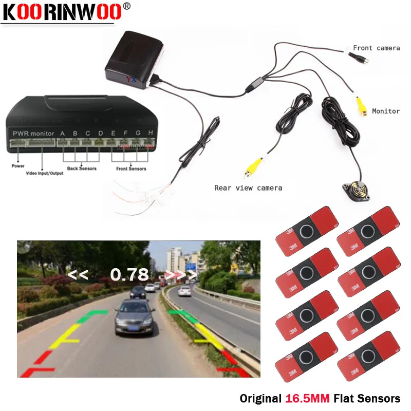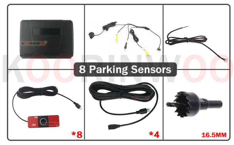 Парктроник Koorinwoo, 13 мм, белый и черный датчик парковки, 8 датчик сигнализации, Видеосистема, можно подключить автомобильные камеры заднего вида, Android, DVD