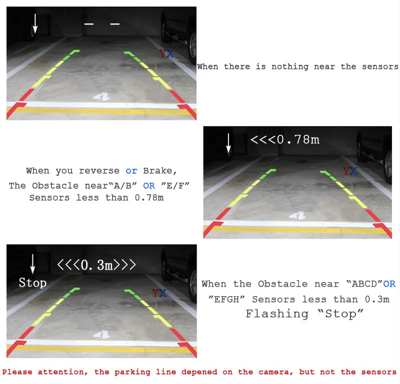 Может быть подключен к камере и любому монитору заднего вида и отображается расстояние на мониторе
