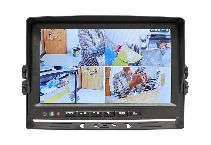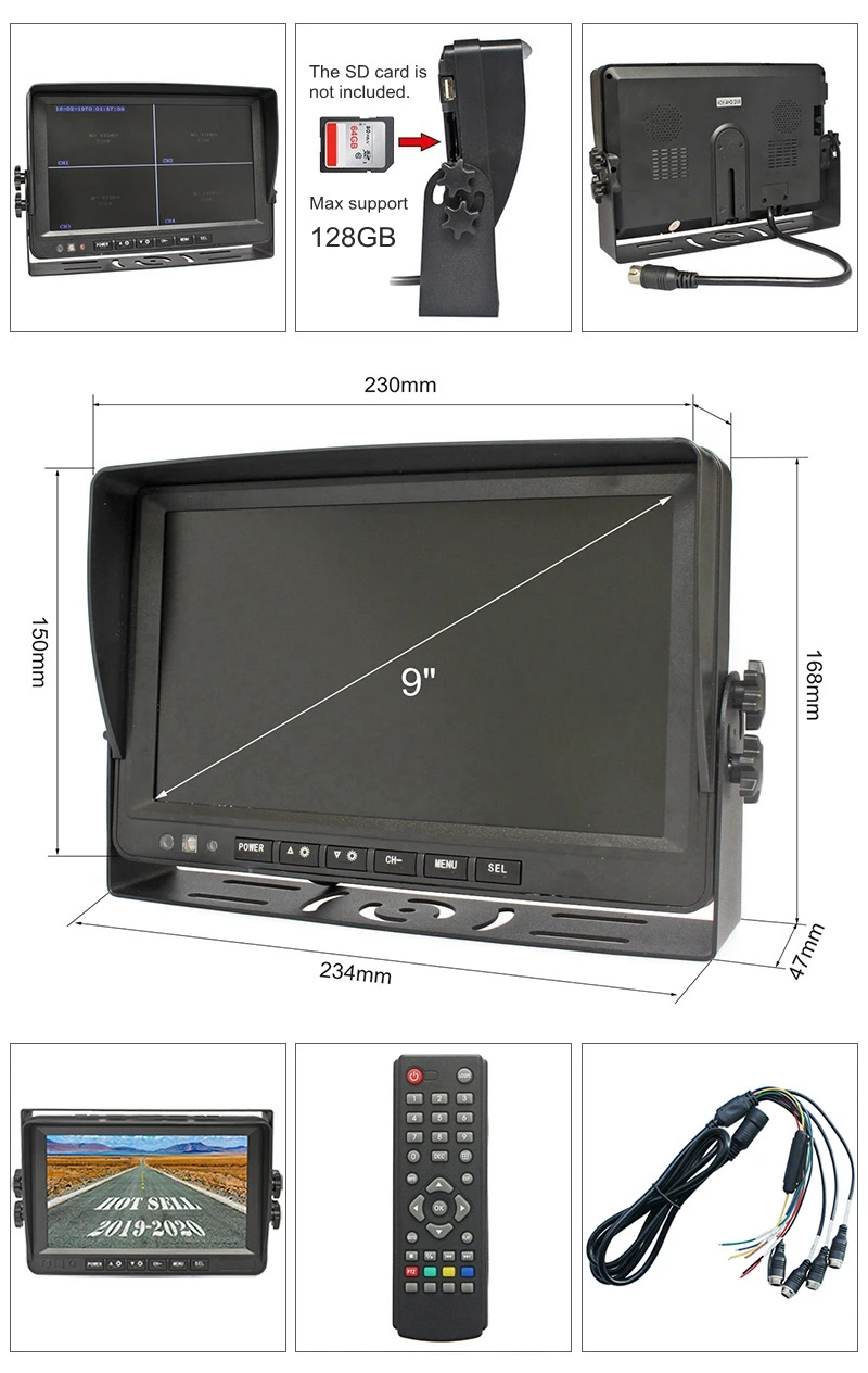 Экран AHD 9 "с разрешением 1024x600 подсветки, с установкой кронштейна. Возьмите с 4-контактным видео входом 4 x, может работать с AHD камерами заднего вида и AHD камерами видеонаблюдения.