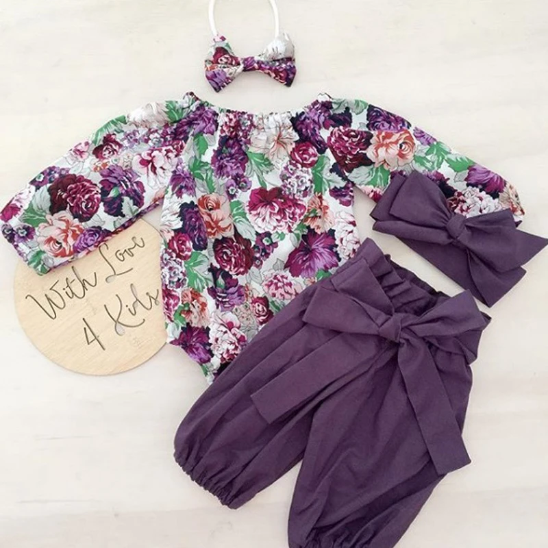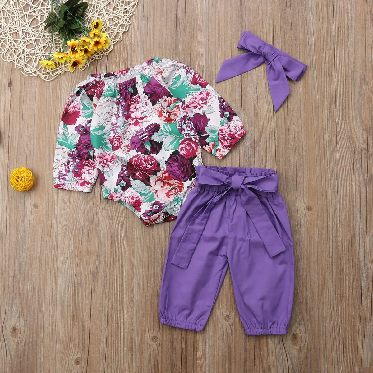Одежда с цветочным рисунком для новорожденных девочек; комбинезон; боди; штаны