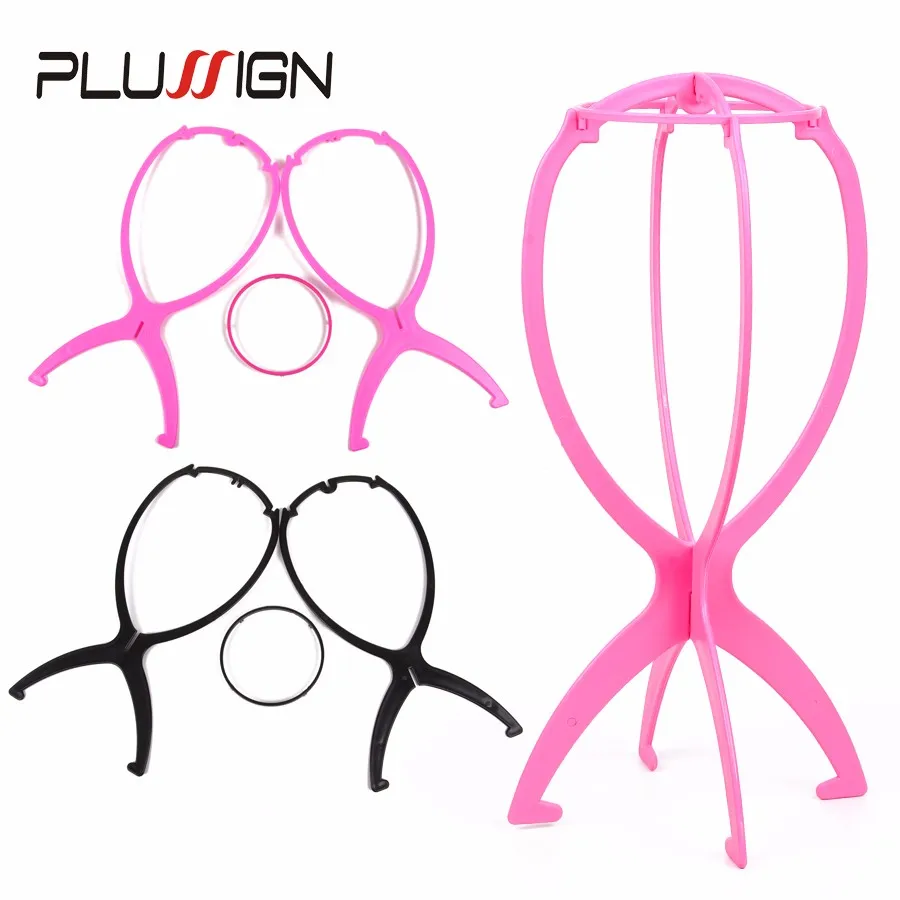 Регулируемая подставка для парика Plussign, 1 шт., пластиковый держатель для головы парика, манекен, переносная Складная подставка для парика, черный, розовый цвет
