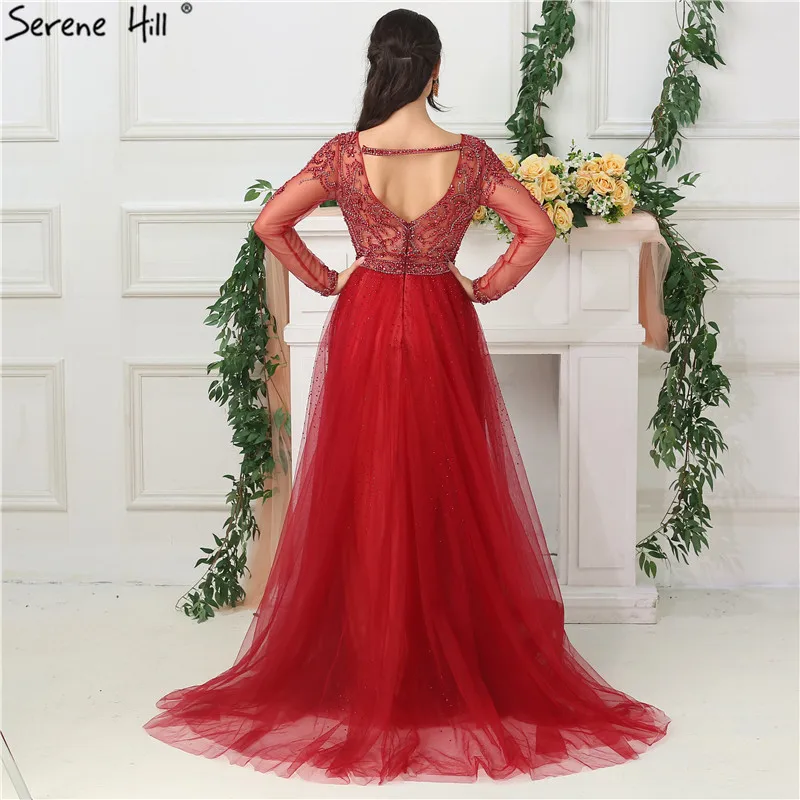 Роскошное вечернее платье винно-Красного цвета со стразами и длинным рукавом, модное вечернее платье со шлейфом, 2021 настоящая фотография LA6641