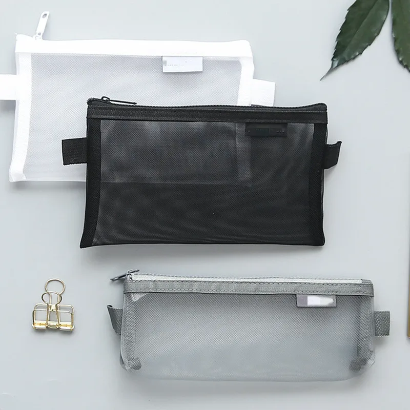 1 шт. прозрачные марлевые Пеналы, вместительные канцелярские принадлежности для студентов, простые дизайнерские сумки для ручек