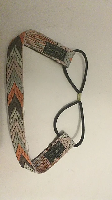 нееластична пов'язка, де стрілочки. тягнуться тільки чорні гумки. не вистачає латексних крапель, бо швидко зісковзує з волосся назад.