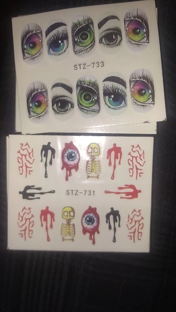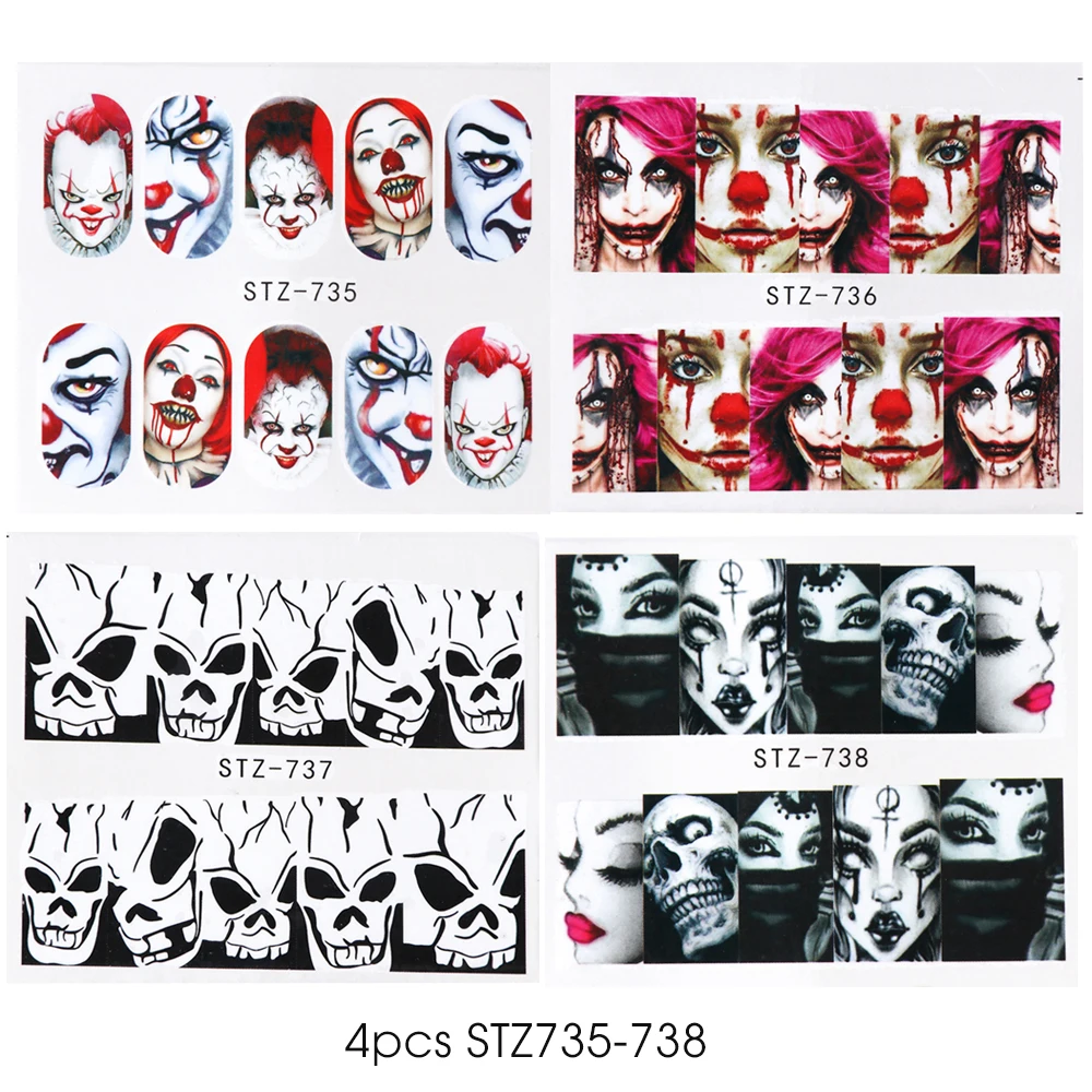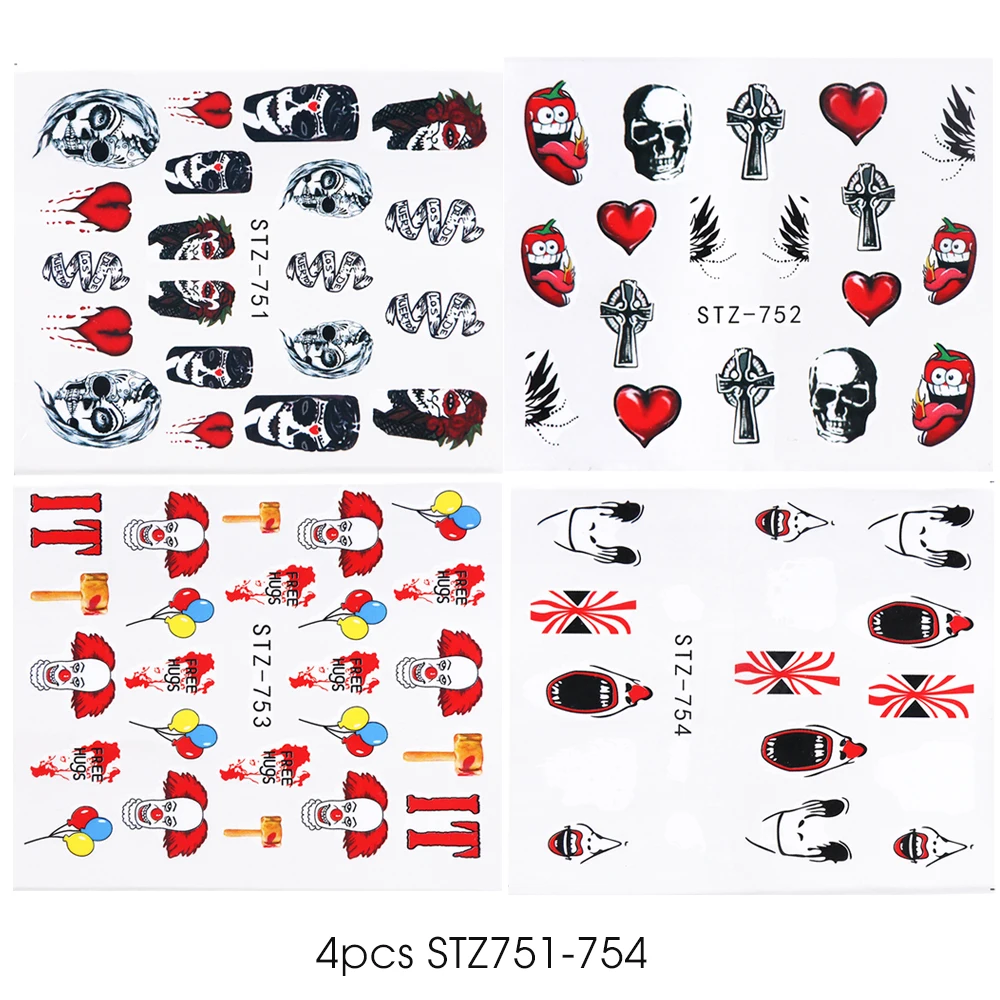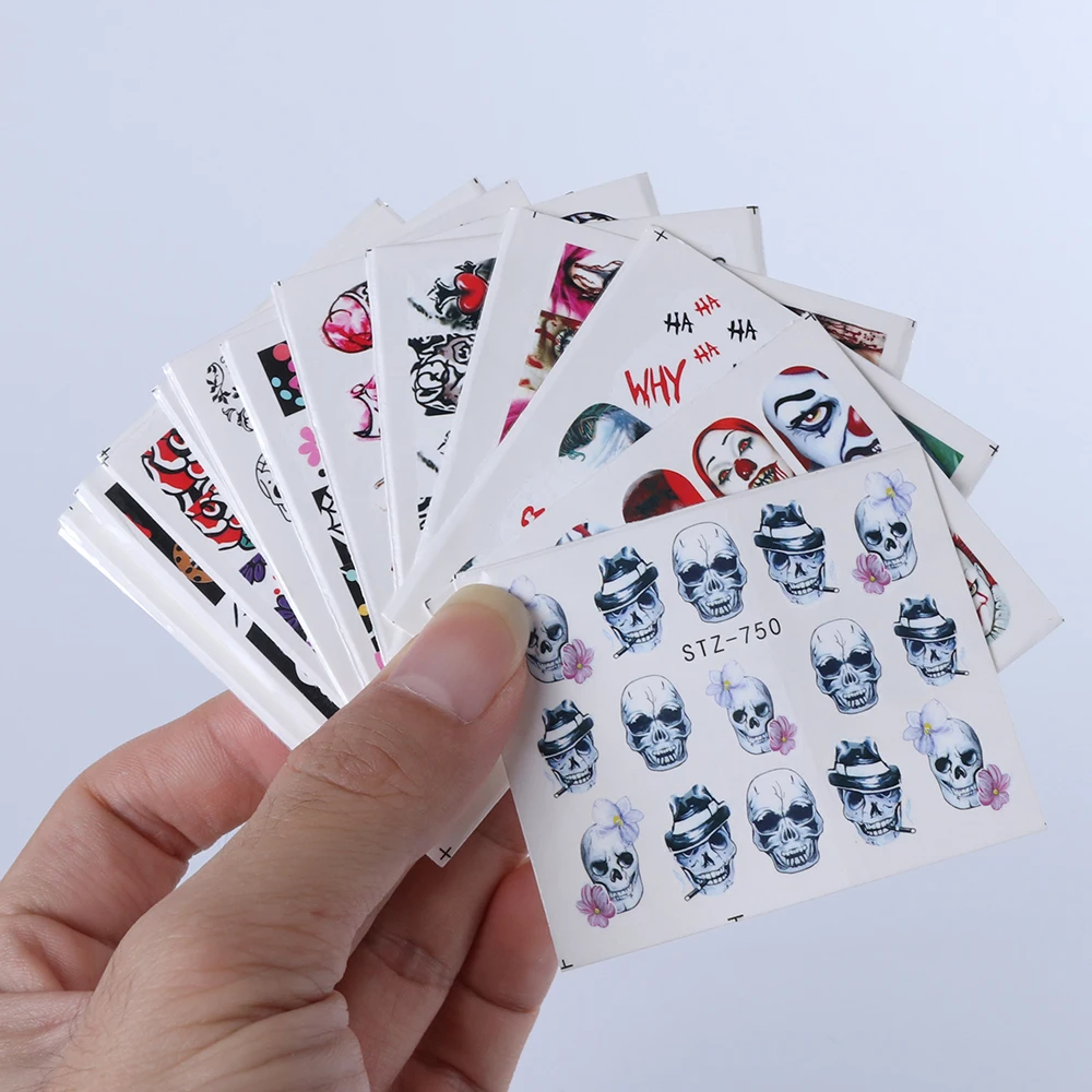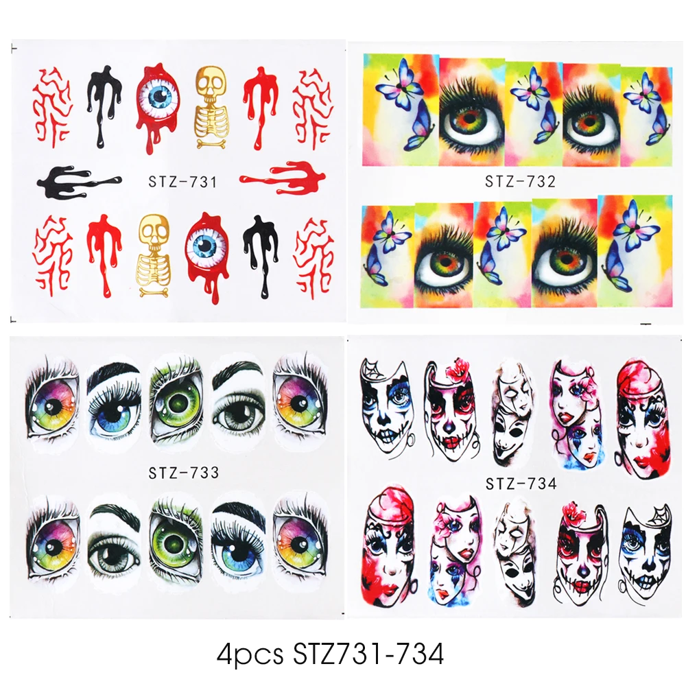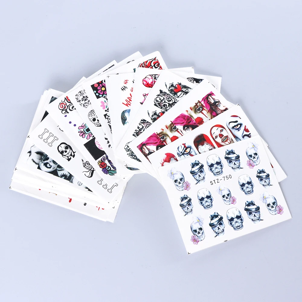 1x череп, кость, наклейки для ногтей, вода, самоклеющиеся, Хэллоуин, слайдер, татуировка, большой глаз, ужасы, наклейки для самостоятельного декора, обертка CHSTZ731-734