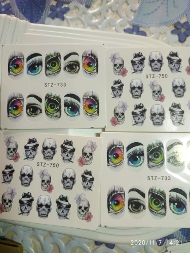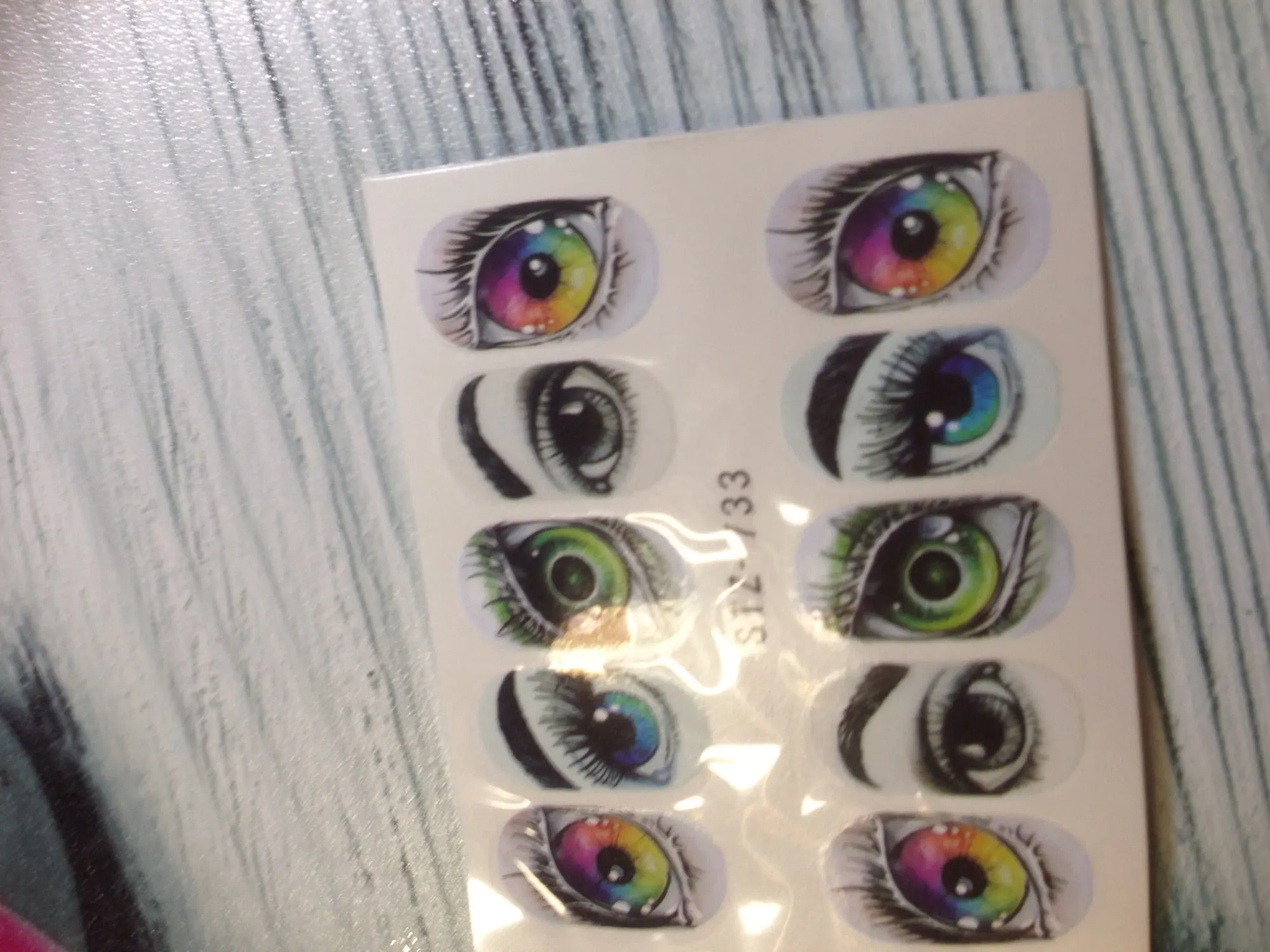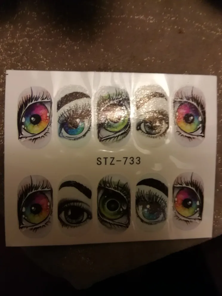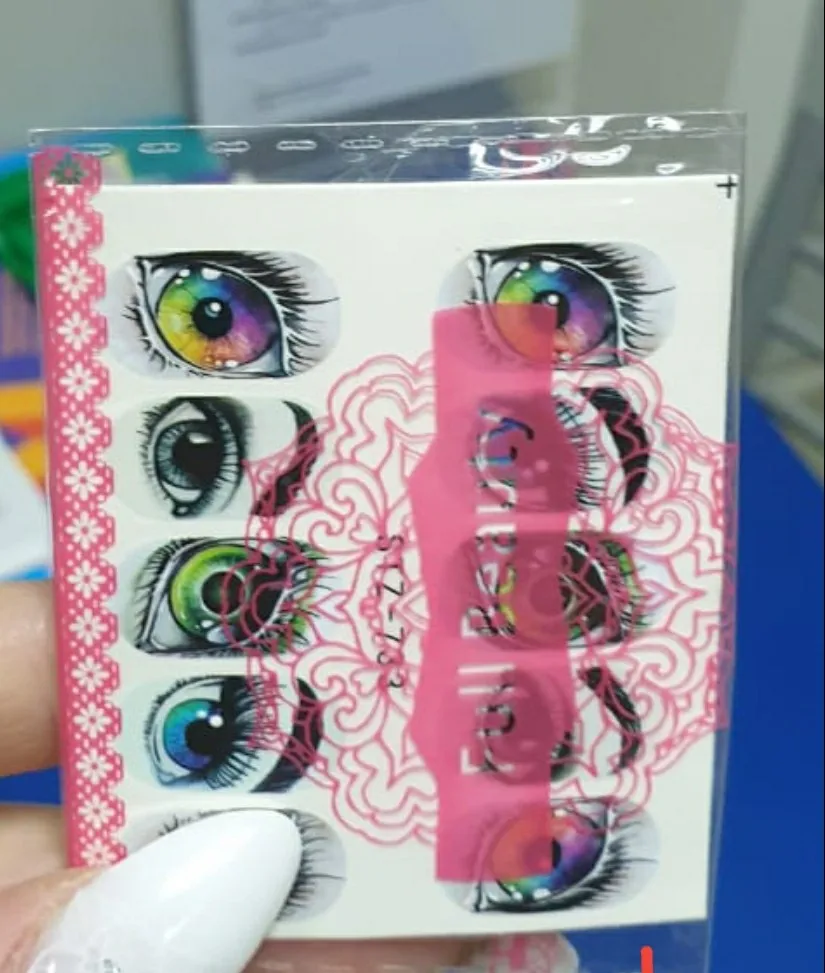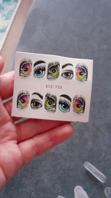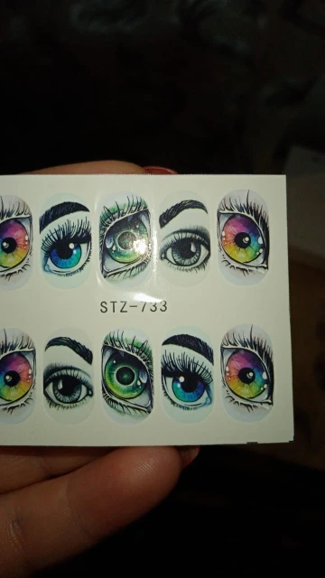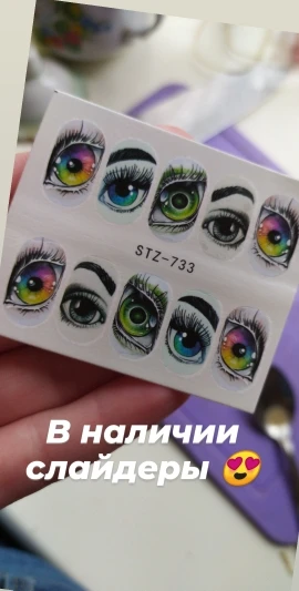 Глаза беру второй раз. Красивые . Только плёнка очень плотная лучше её по краю растворить праймером. Наносить строго на белоснежный гельлак тогда контуры слайдера сольются с фоном, так как слайдер не на весь ноготь по размеру.