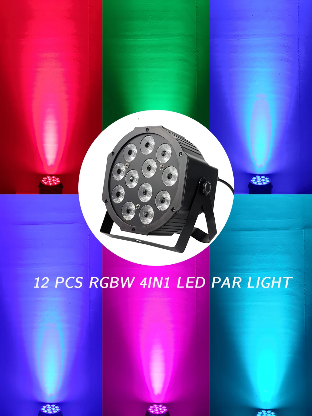 Сценический прожектор Par 12x12 Вт, светодиодный прожектор Par RGBW 4 в 1, плоский прожектор Par DMX512, полноцветсветильник прожектор для дискотеки