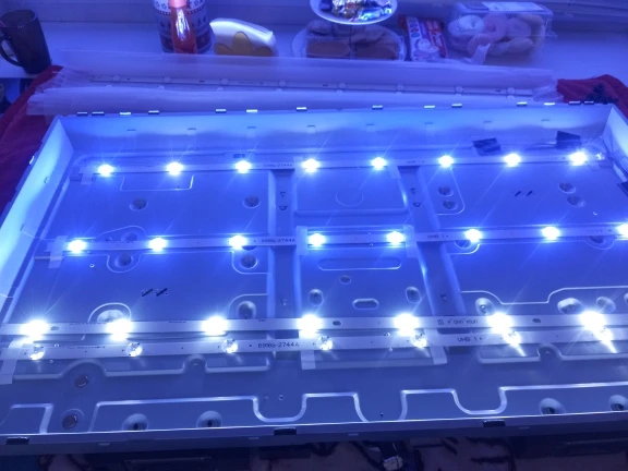 Товар пришел за две недели, это очень хорошо. ленты упакованы в тубус. после сравнения с оригиналом выяснилось что не совпадает расположение светодиодов, пришлось вырезать отверстия в рассеиватели. и самое главное несовподает полярность, там где минус на ленте должен быть плюс, соответственно там где плюс там минус. поменял полярность, собрал, всё работает, телевизор как новый.надеюсь служить будет долго. если руки растут от туда от куда нужно то поменять всё не составит труда. ещё бы гарантию на них давали хотя бы год.