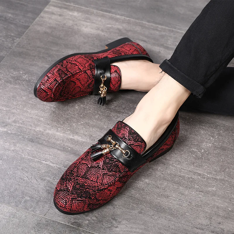 M-anxiuмодельные туфли с кисточками и змеиным узором; Новинка 2020 года; Стильные повседневные кожаные мокасины; Обувь для вечеринок и Рождества