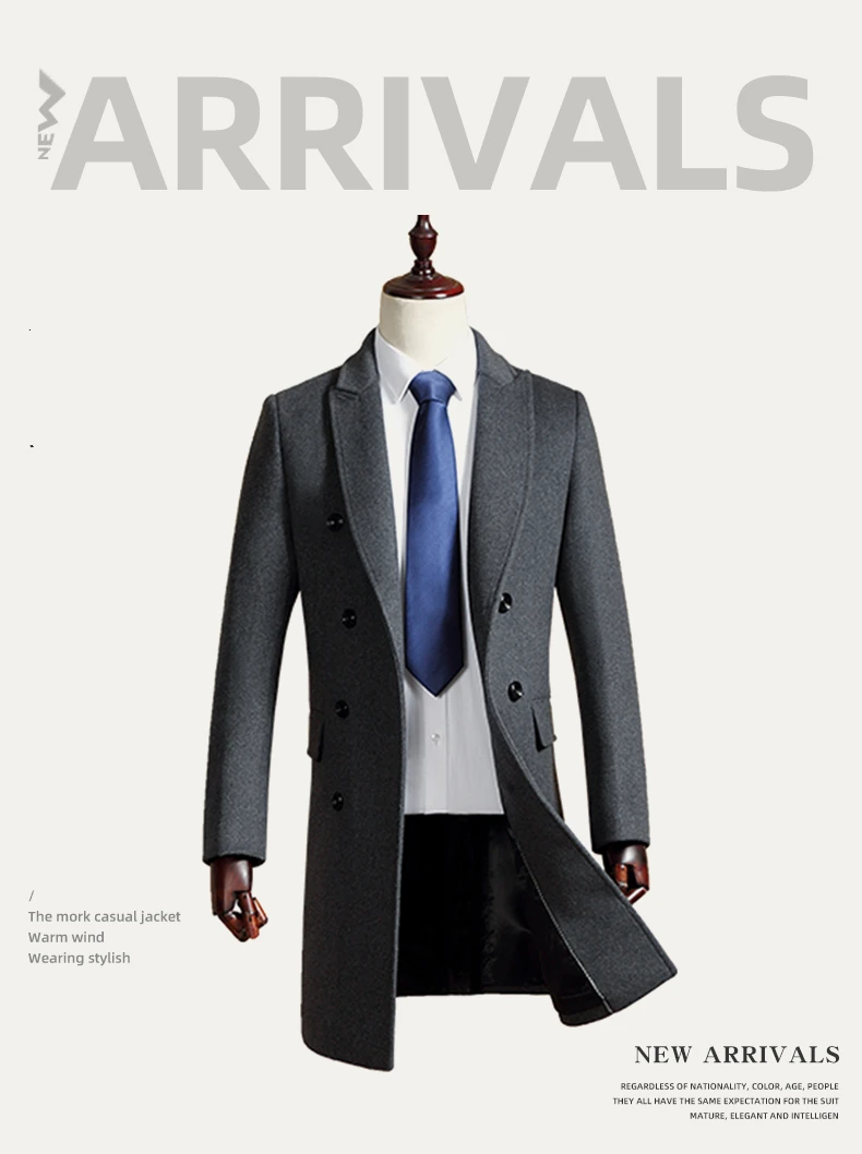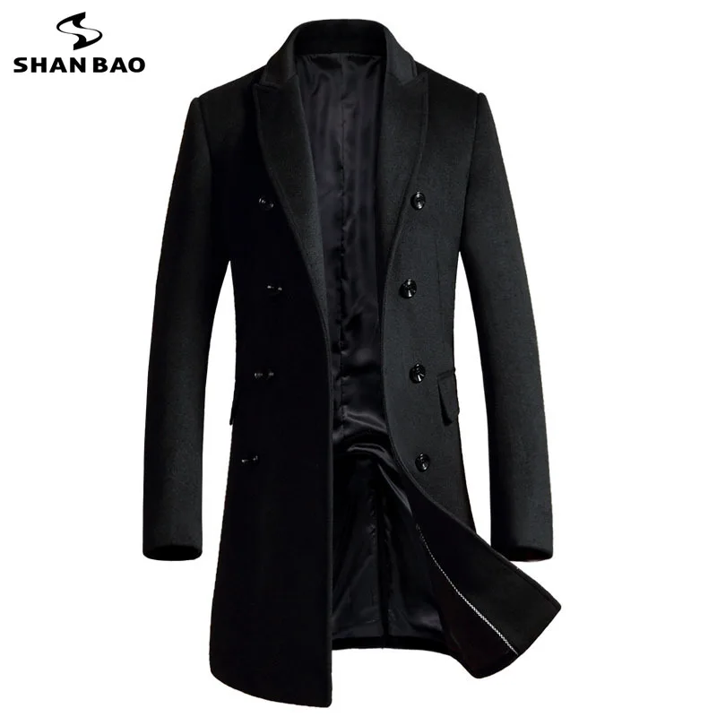 Мужское шерстяное пальто SHAN BAO, длинное приталенное двубортное пальто черного, серого, красного цвета в деловом стиле, для осени и зимы, 2021