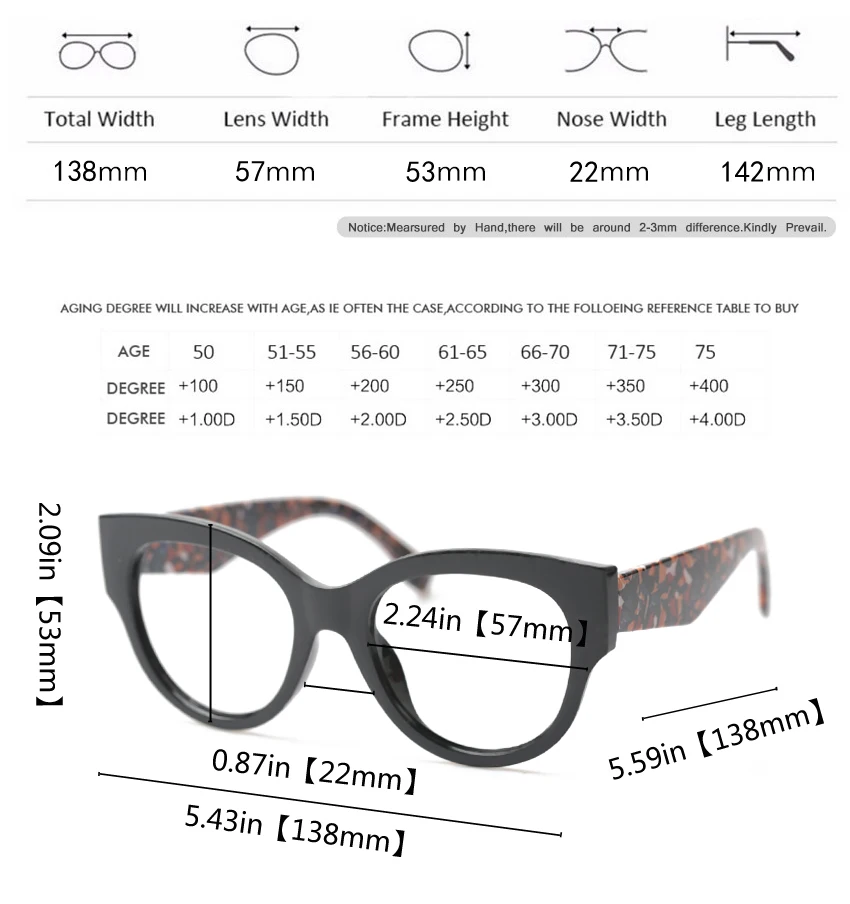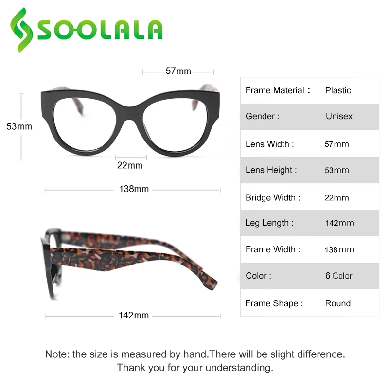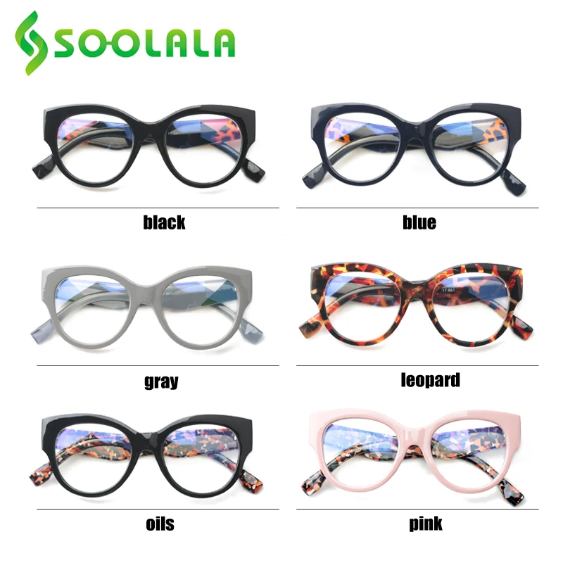 -SOOLALA очки для чтения для женщин и мужчин Новое поступление полная оправа с разноцветным рисунком ноги большие очки для чтения по рецепту + от 0,5 до 4,0 -Цвет: черный/синий/леопардовый/серый/масло/розовый -Разноцветный узор дает вам красочный выбор -Уникальный Модный дизайн ног -Модные, удобные, товары первой необходимости -Лучший выбор подарков для женщин и мужчин -Ширина линз: 50 мм, высота: 44 мм, Длина мостика: 15 мм, длина дужки: 145 мм, общая длина: 137 мм -Поставляется с фирменной "SOOLALA" чистой тканью и мешочком