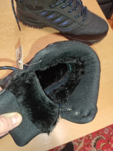 Товар соответствует описанию. Получил в течении 14 дней. Размер соответствует, не маломерки. Симпатичные, аккуратные. Теплые, при -10 вполне комфортно. Очень хорошо держатся на ледяных поверхностях, практически не скользят. Этот "мех" внутри ботинок лезет комочками при первом надевании, потом вроде все стабилизируется. Брал за 2600 по скидке, за такую цену - вполне достойная обувь.