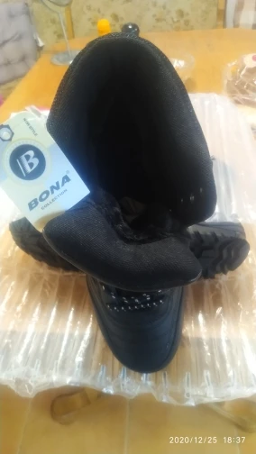 товар прийшов дуже бистро чуть більше чим 2 неділі, розмір я замовив 8, 41 по нашому , трошечки великуваті ну не сильно якщо надіти теплі носки то буде в самий раз ,теплі всередині не знаю як буде зимою ,але думаю буде комфортно і тепло ,я вперше замовляю взуття на Аліекспрес і поки я задоволений .))Дякую BONA за швидку доставку і за гарно упакований товар)