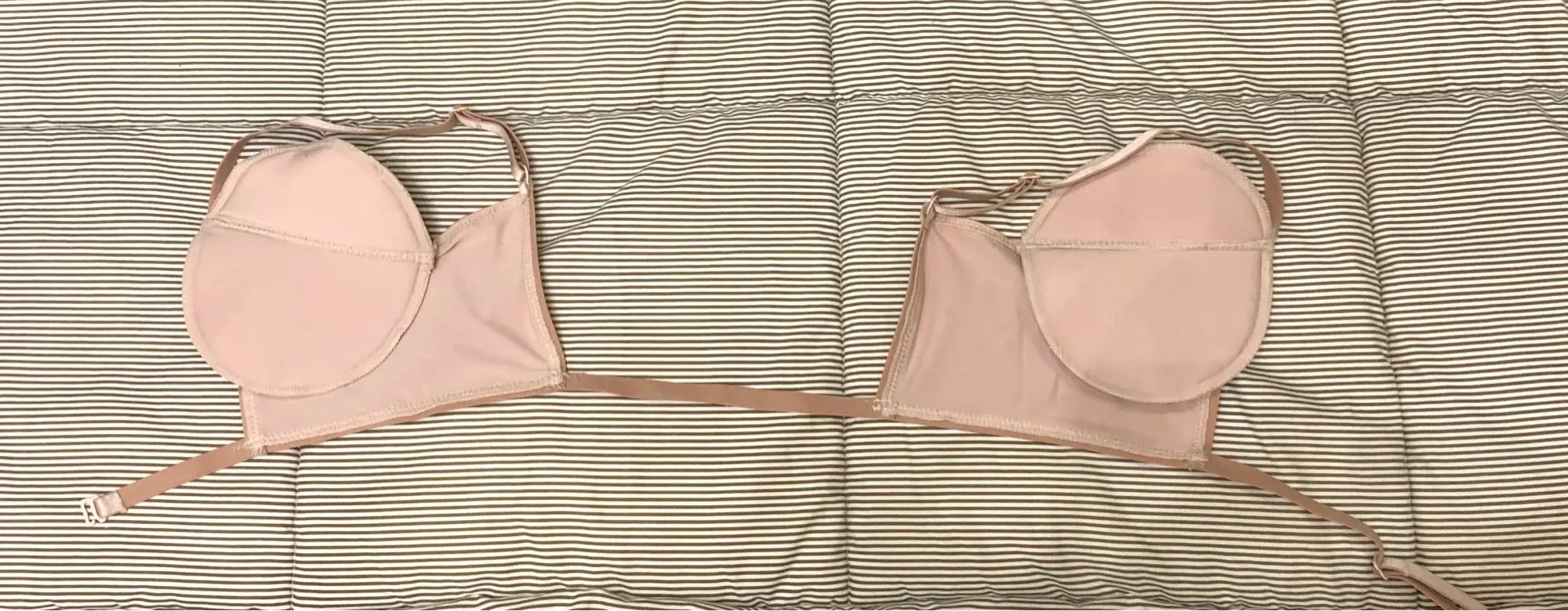 Ношу 46-й размер. Объем груди 90. Подошел хорошо. Но мне, резинки натирают подмышками! Может надо ещё по экспериментировать,(резинки послабее сделать)!))) К продавцу претензий нет!!!!)))