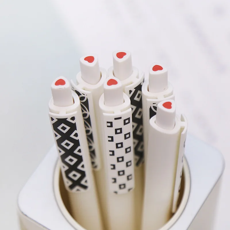 Гелевая ручка с милым красным сердцем, 6 шт., 0,5 мм, шариковые черные цветные ручки, канцелярские принадлежности, офисные и школьные принадлежности, школьные материалы F043