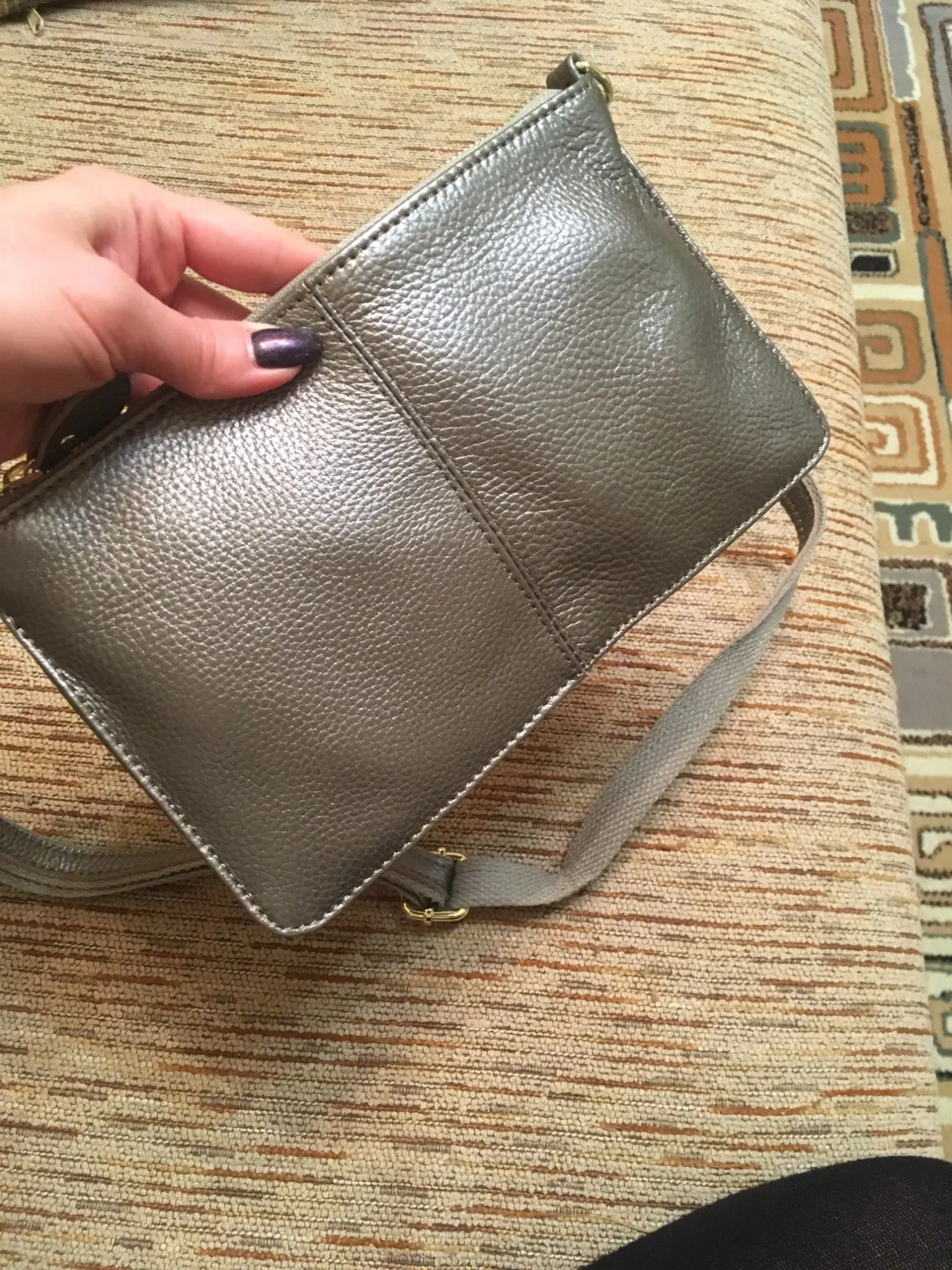 Сумочка хорошая, пахнет кожей... Спасибо большое магазину - я случайно заказала не тот цвет, отписала им и они оперативно поменяли на Сильвер.