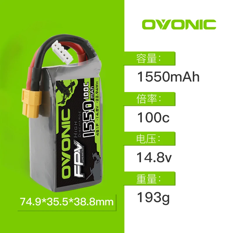 Применение: OVONICЛитий-полимерный аккумулятор 1550 мАч 100C 4S1P предназначен для Nemesis 240 Mini, Skylark M4-FPV250, мини-Шредер 200, INDY250 PLUS, HOVERSHIP MHQ2(270), ZMR 250, Emax Nighthawk 250, Mini H, QAV250, QAV180/210, Danaus, Vortex 285, Mini H, флип FPV рамка, Emax Nighthawk 250, ZMR 250, Гироскутер MHQ2, MOJO 280, droen, FPV и т. д.