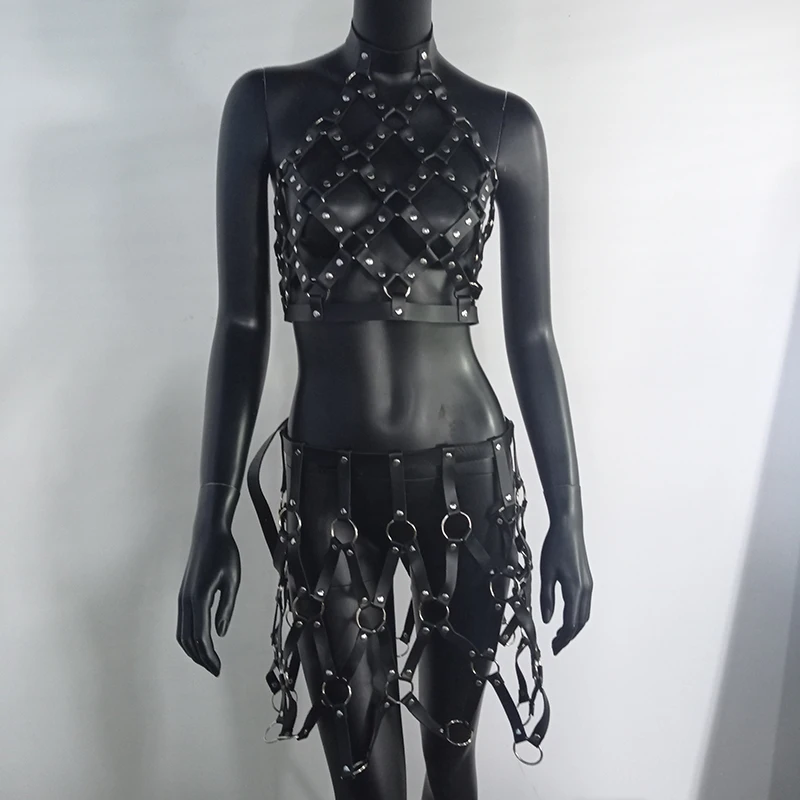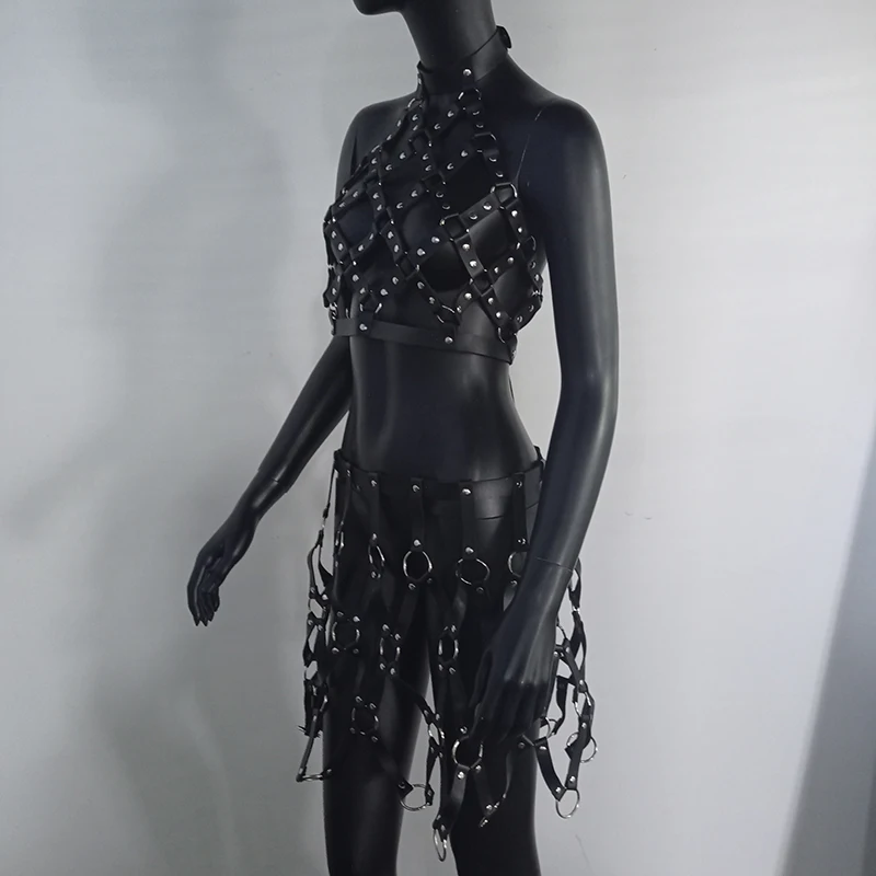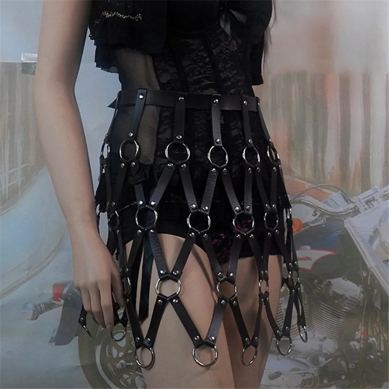 Женская портупея AKYZO из искусственной кожи, черная портупея в стиле панк, с регулируемыми подвязками, с вырезами, плетеный пояс, юбка с открытой спиной