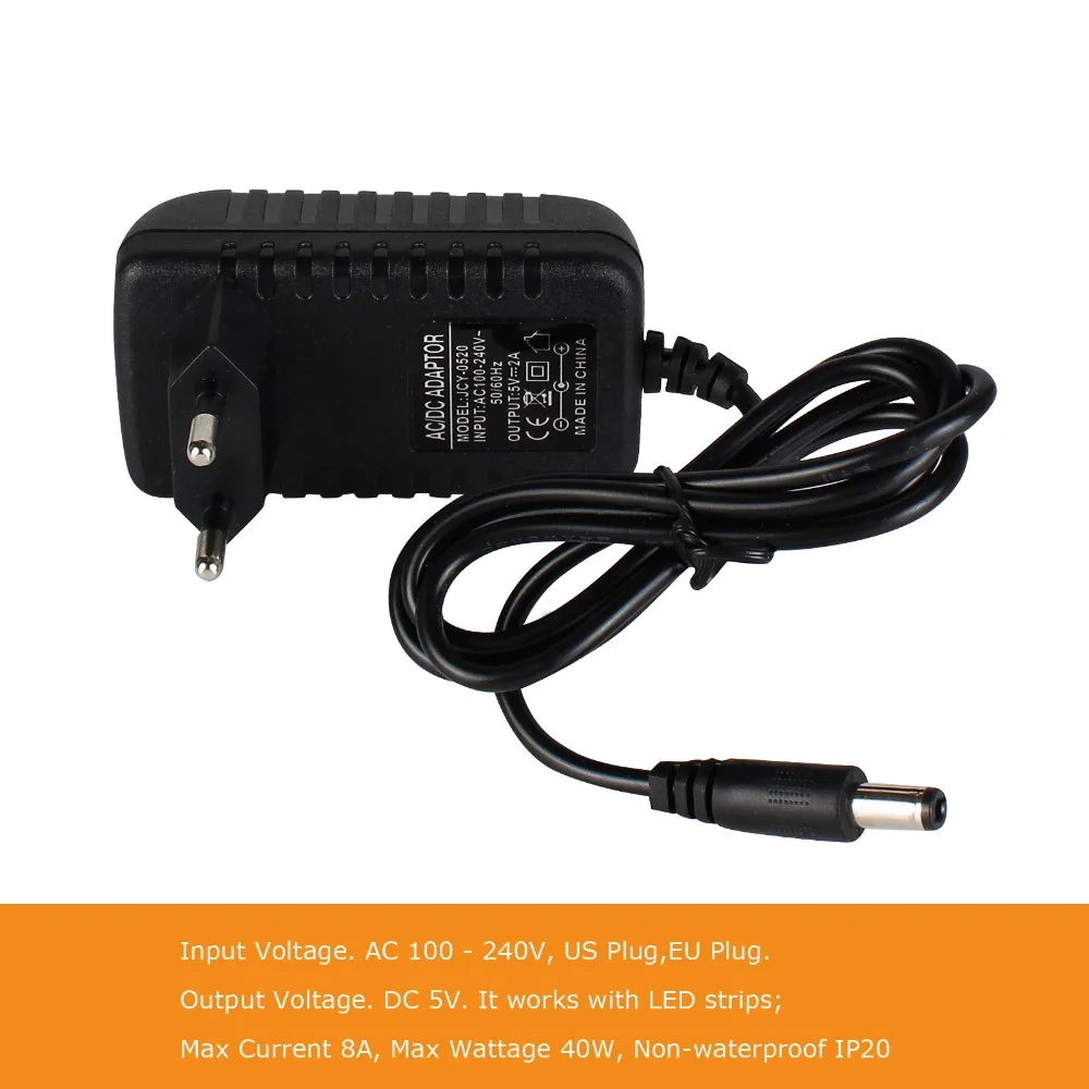 5V 1A 2A 3A 5A 6A 8A 10A источник питания для светодиодной ленты EU/US адаптер для AC110-220V-DC 5V опции трансформатор