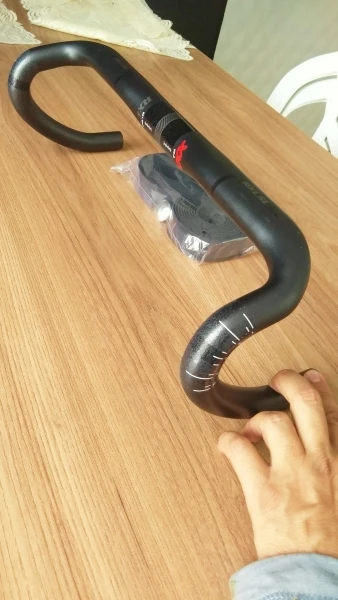 Доставка очень быстрая, 13 дней. Очень приятно удивил руль: очень хороший вес (171 грамм) и очень хорошая отделка. Лента для руля также очень легкая (43 грамма). Я сделал выход за несколько миль, и я думал, что это очень удобный и жесткий руль, никаких заметных отжиманий.