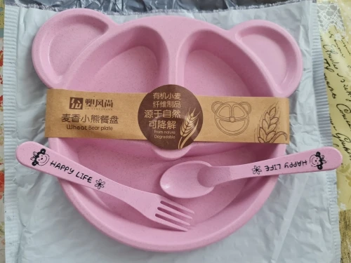3 шт.компл. детская миска + ложка + вилка, посуда для кормления, мультяшный медведь, детская посуда, для еды, антигорячая тренировочная обеденная тарелка