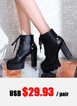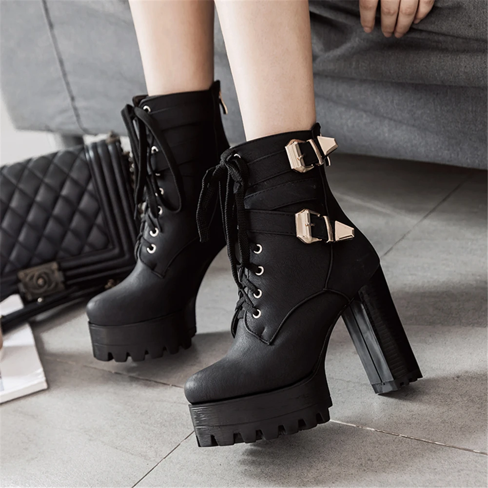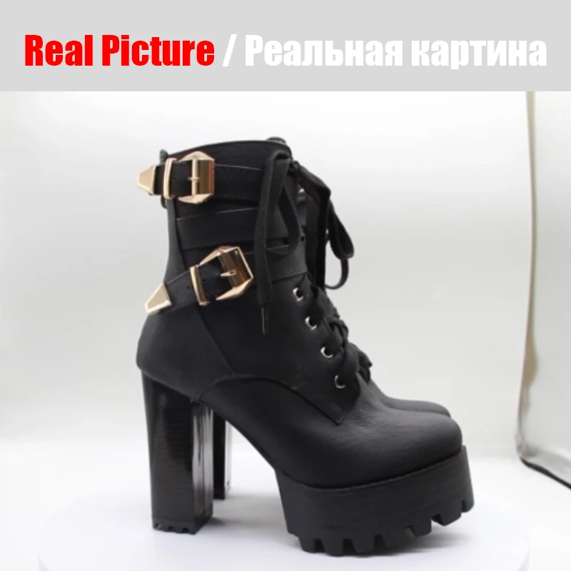 Ботильоны BONJOMARISA женские на платформе и высоком каблуке 11 см, размера плюс 33-50, черные, на шнуровке, весна-зима 2020