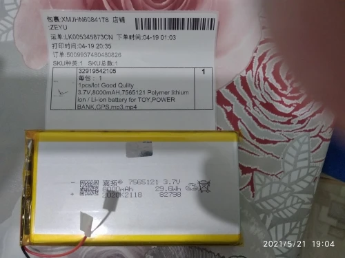 1 шт.лот, 3,7 в, 8000 мА ч, 7565121 полимерный литий-ионныйлитий-ионный аккумулятор для игрушек, внешнего аккумулятора, GPS,mp3,mp4