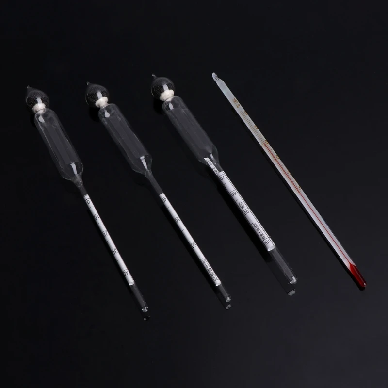 Профессиональный и точный набор для измерения алкоголя включает в себя 0-40% спиртометр, 40-70% спиртометр, 70-100% спиртометр и термометр.