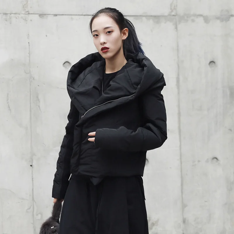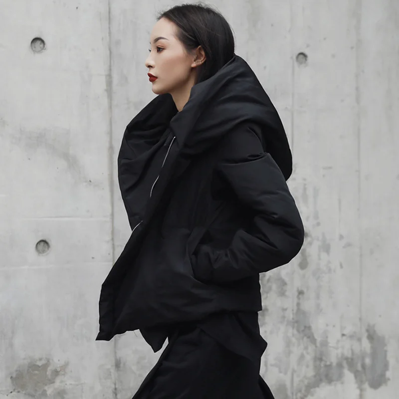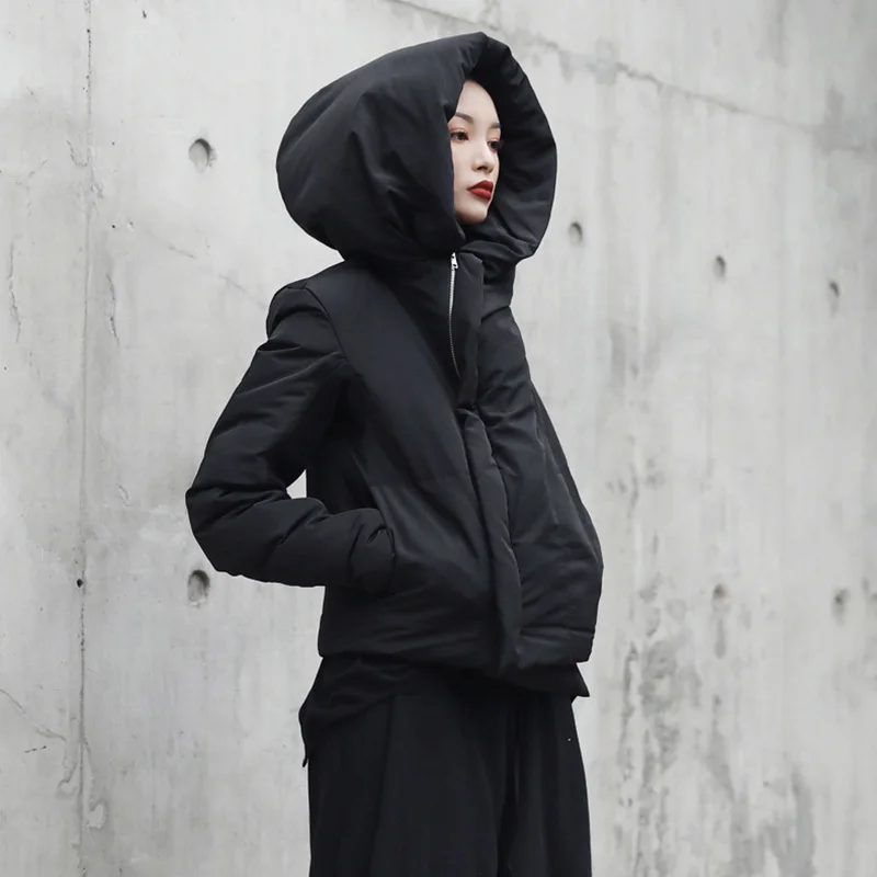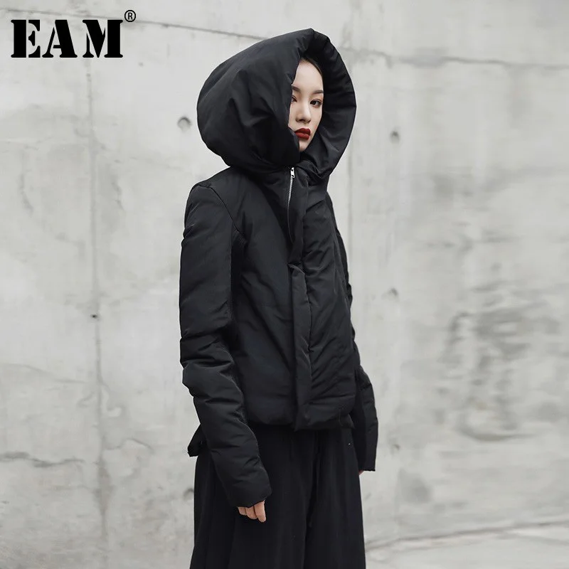 EAM утолщенное Черное короткое пальто с капюшоном и хлопковой подкладкой, Свободная Женская парка с длинным рукавом, модная новинка весна-осень 2022, JI08