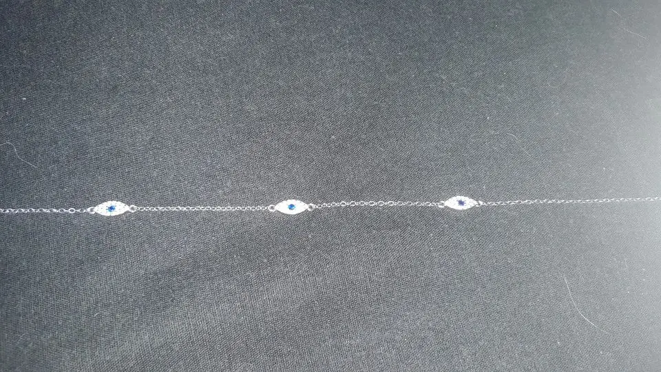 Цепочка женская из серебра 925 пробы, с синим цирконием, от сглаза, 35 + 10 см