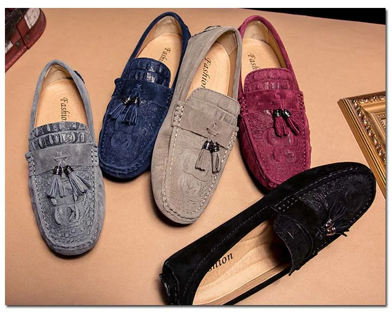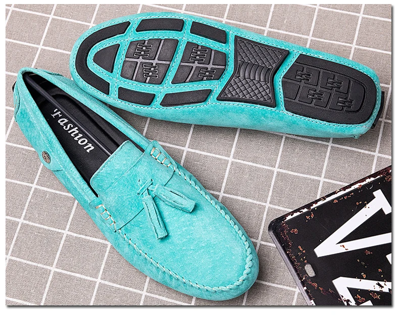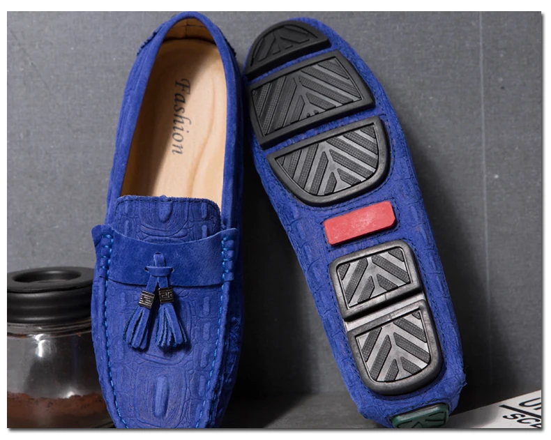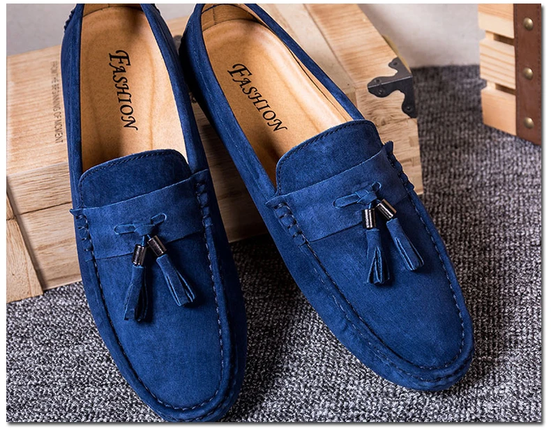 Мужские замшевые туфли на плоской подошве, роскошные брендовые Мокасины, лоферы, обувь для вождения, синего цвета