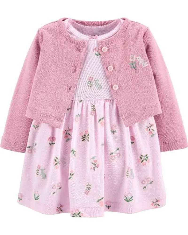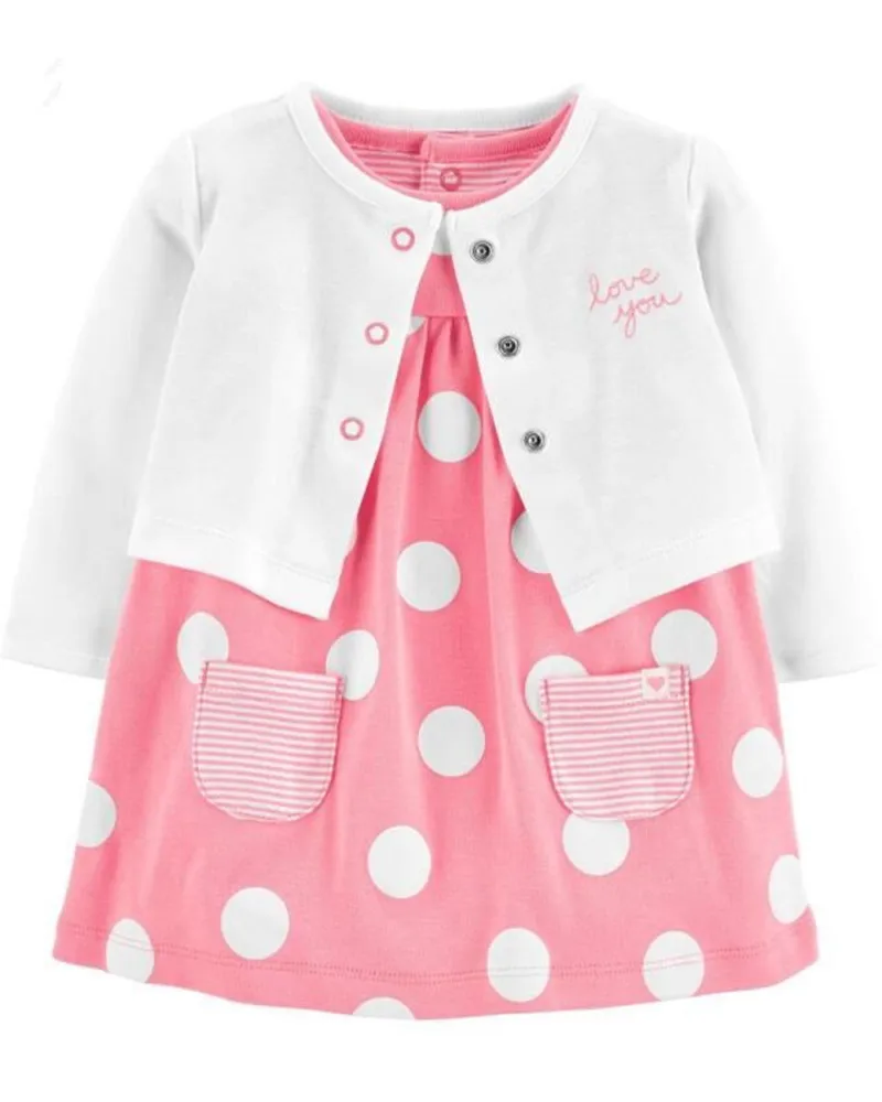 Платье для девочек, 2 шт.компл., Кардиган с длинным рукавом и короткое боди, 6-24 м